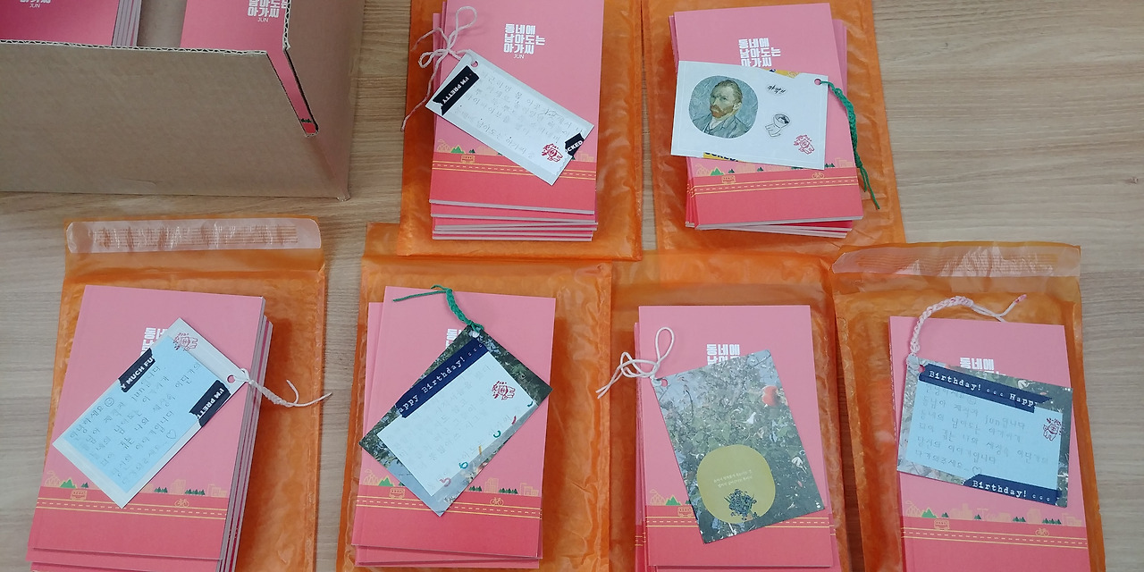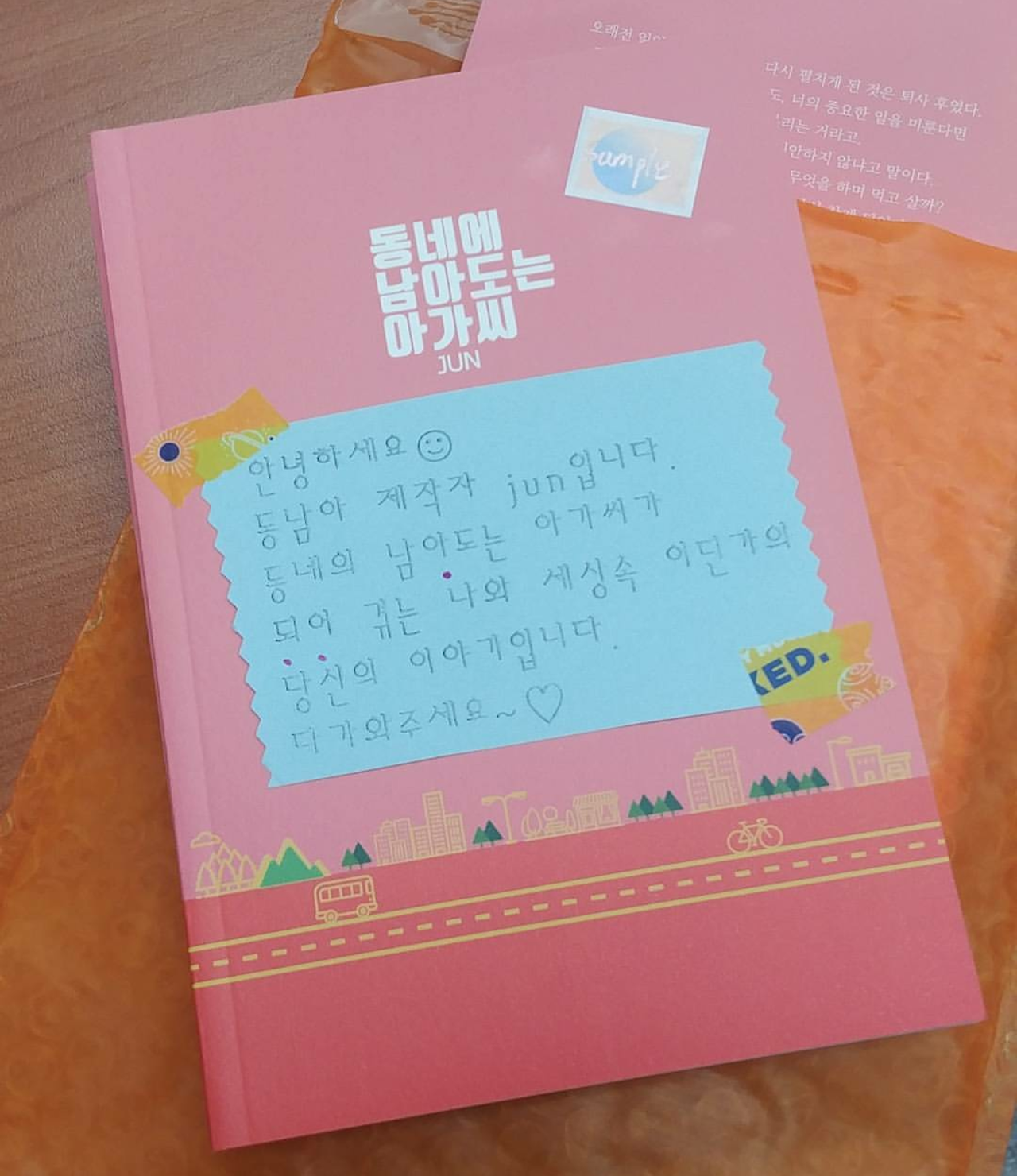 처음 택배 방식은 편의점이었다. 서류봉투에다 뽁뽁이로 책을 감싼 후 보냈다. 중량으로 하기에 3500원꼴이었다. 왠지 형태가 없어서 내구성도 걱정돼 상자에서>> 에어캡이 안쪽으로 감싸진 안전 비닐봉지에다 넣어서 배송하고 있다. 굿즈에 대한 아쉬움은 그냥 내 힘으로 해결했다. 마침 수집해 놓았던 엽서, 손글씨, 손뜨개 기술 등을 활용해서 북꼬리 겸 책갈피를 만들어 책과 함께 보냈다. 왠지 더 성의 있어 보이고 싶었다. 거래 서점들이 서울 외 위의 여러 지역으로 분산됐음으로 포장이나 북꼬리로 직접 찾아가지 못하는 아쉬움을 대신했다.