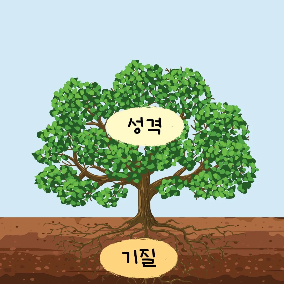 기질과 성격은 '쉽게 변하지 않는다'는 점은 같아요. 하지만 기질은 영어로 temperament, 성격은 character 또는 personality라고 합니다. 기질은 유전이기 때문에 거의 변하지 않는 고정값이에요. 하지만 성격은 유전이 아니라 훈련되어 겉으로 보이는 기질이기 때문에, 상황에 따라 변화한 것처럼 보일 수도 있어요. 흔히 "너 성격 많이 바뀌었다!"라고 말하는 게 바로 이 지점이에요.