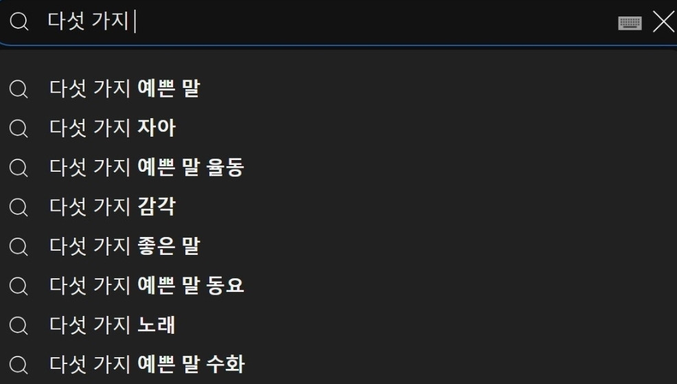 유아들과 유튜브에서 영상을 보기 위해 검색을 하면, 자동완성되는 검색어들이 주루룩 뜨는 걸 보고 유아들은 이렇게 질문해요.