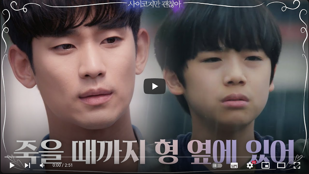 드라마 <사이코지만 괜찮아>에서 어린 '강태(김수현)'에게 엄마가 한 말이에요. 강태에게는 자폐 범주성 장애가 있는 형 '상태(오정세)'가 있어요. 어린 강태는 '비장애형제자매'로서 형을 책임져야 한다는 부담감을 느껴요. 또 형을 사랑하지만 동시에 미워하는 감정 속에서 혼란스러워 하기도 해요.