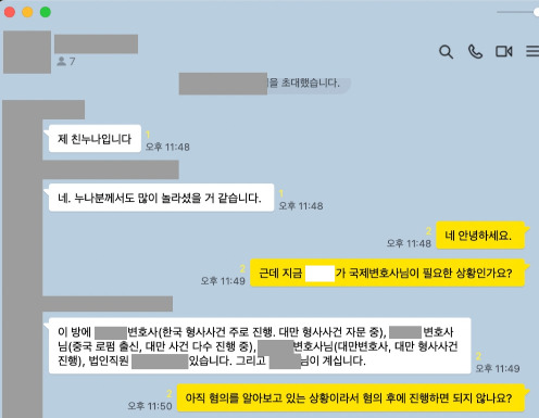 그러더니 국제변호사방에 초대됐다.