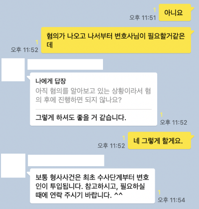 나는 지금 변호사가 필요하냐고 물었고, 동생은 지금 경찰 조사를 받는 거기 때문에 변호사가 필요하지 않다고 했다. 그리고 동생이 지금 너무 억울하다고, 강력하게 자신의 무혐의를 주장하고 있기 때문에 조사 후에 사기 혐의가 있다는 게 확인되면 그때 알아봐도 된다고 했다.
