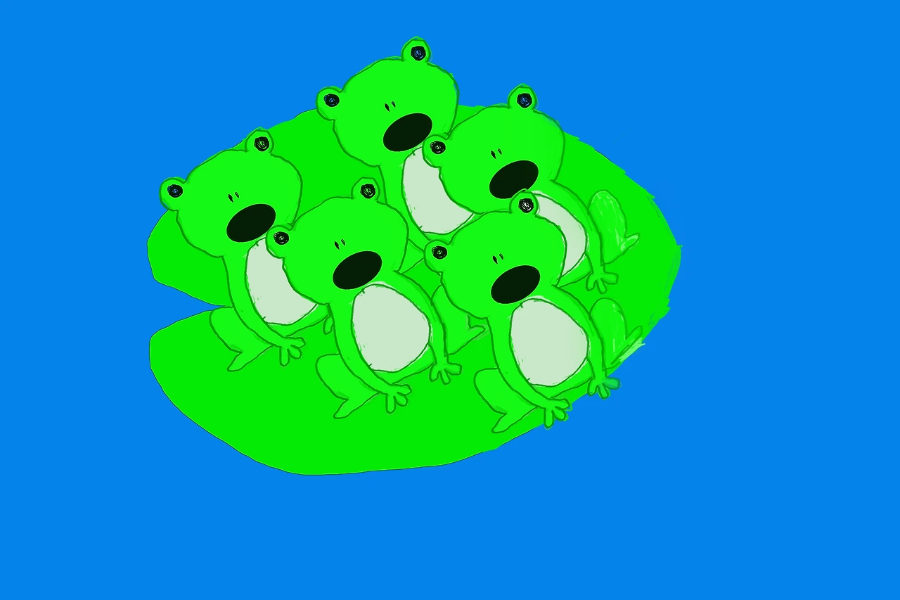 연잎 위의 개구리들은 생각했다. 잉어의 입에서 탈출한 것일까? 만약, 잉어가 저 개구리를 잡아먹으려다가 실패했다면, 배가 아직 고플 수도 있어. 안된 일이지만, 내가 살려면 저 개구리가 희생되어야 해.