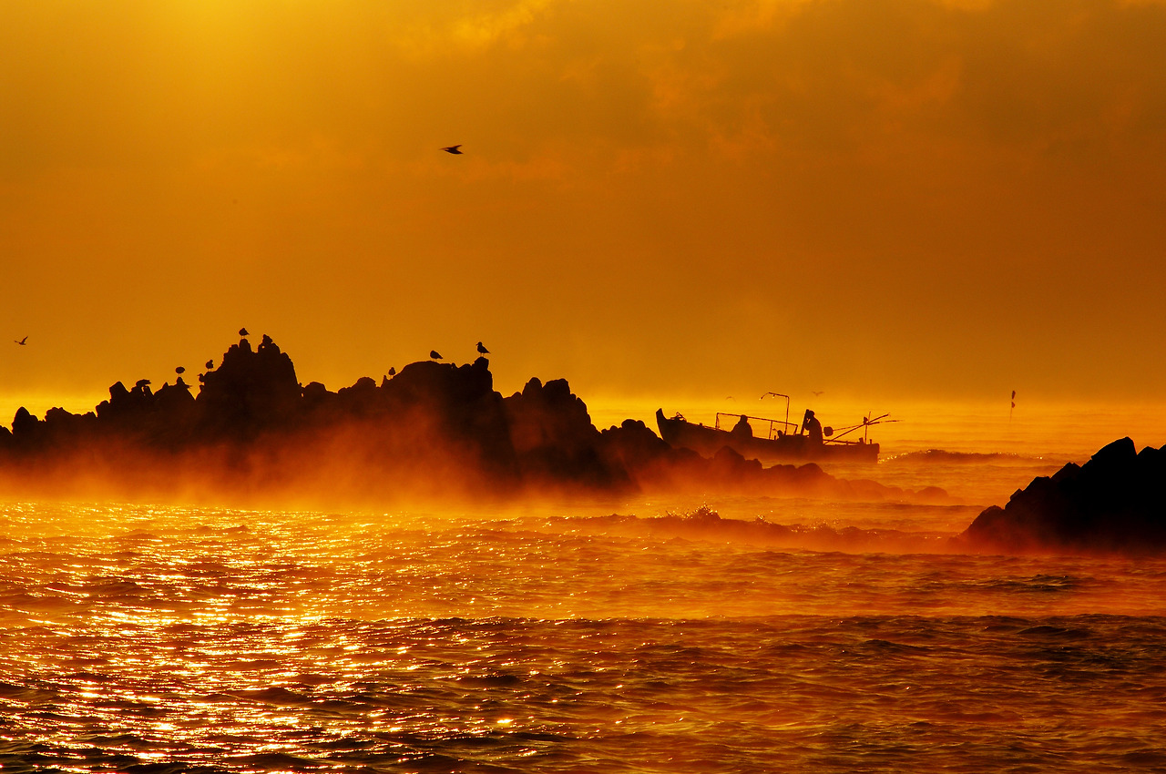 감은사지에서 5분 거리에 있는 문무대왕릉은 죽어 용이 되어 나라를 지키겠다던 문무왕의 납골이 뿌려진 곳이다. 새벽녘, 해가 뜰 때 문무대왕릉 앞에 서 보시라. 수평선 끝에서 거센 파도가 밀려오고, 반공은 갈매기들의 날갯짓으로 어지럽다. 그리고 어디선가 꽹과리와 징, 북소리가 들린다. 문무대왕릉은 기도를 드리려는 무속인들이 많이 찾는다.
