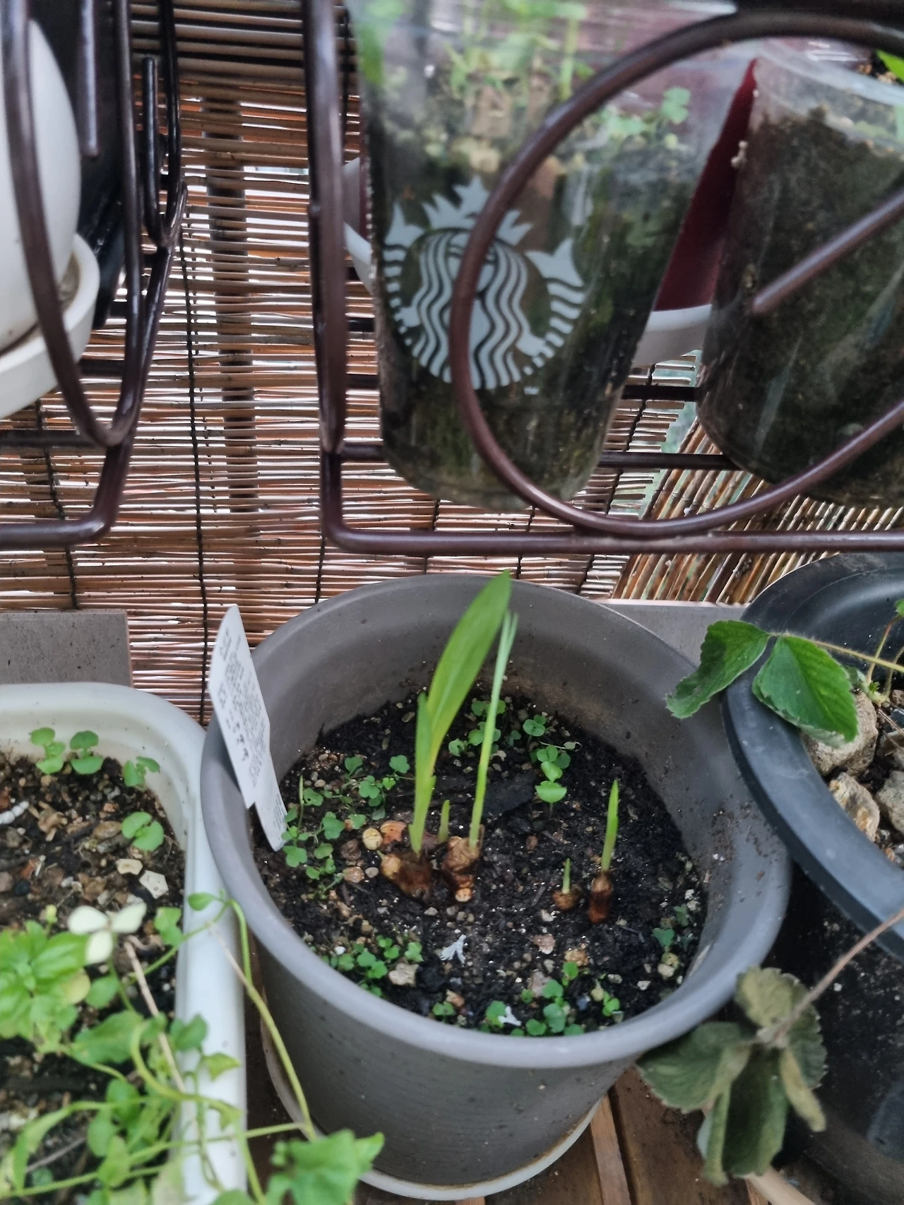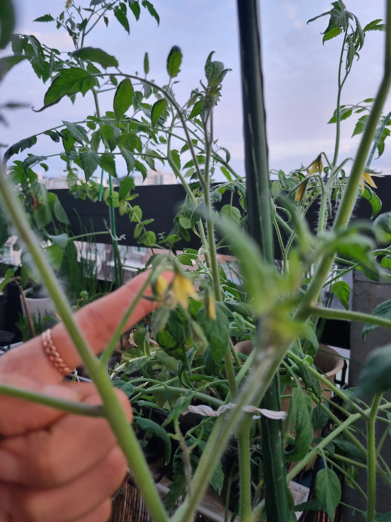 좌측 화분에 봄에 예쁘게 꽃을 피었던 수선화 싹이 다시 올라오고 있다, 우측은 토마토 꽃 참 신기하게도 땅에 박힌 노지에서