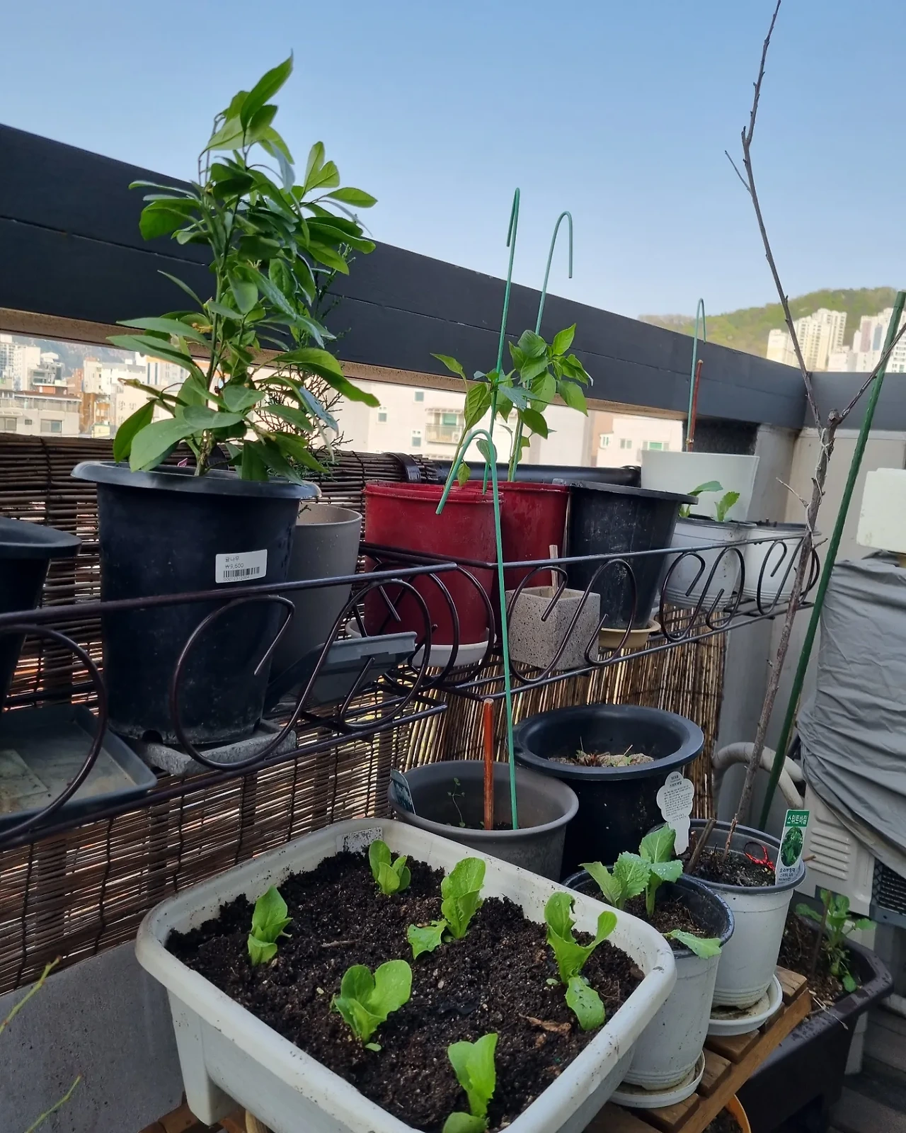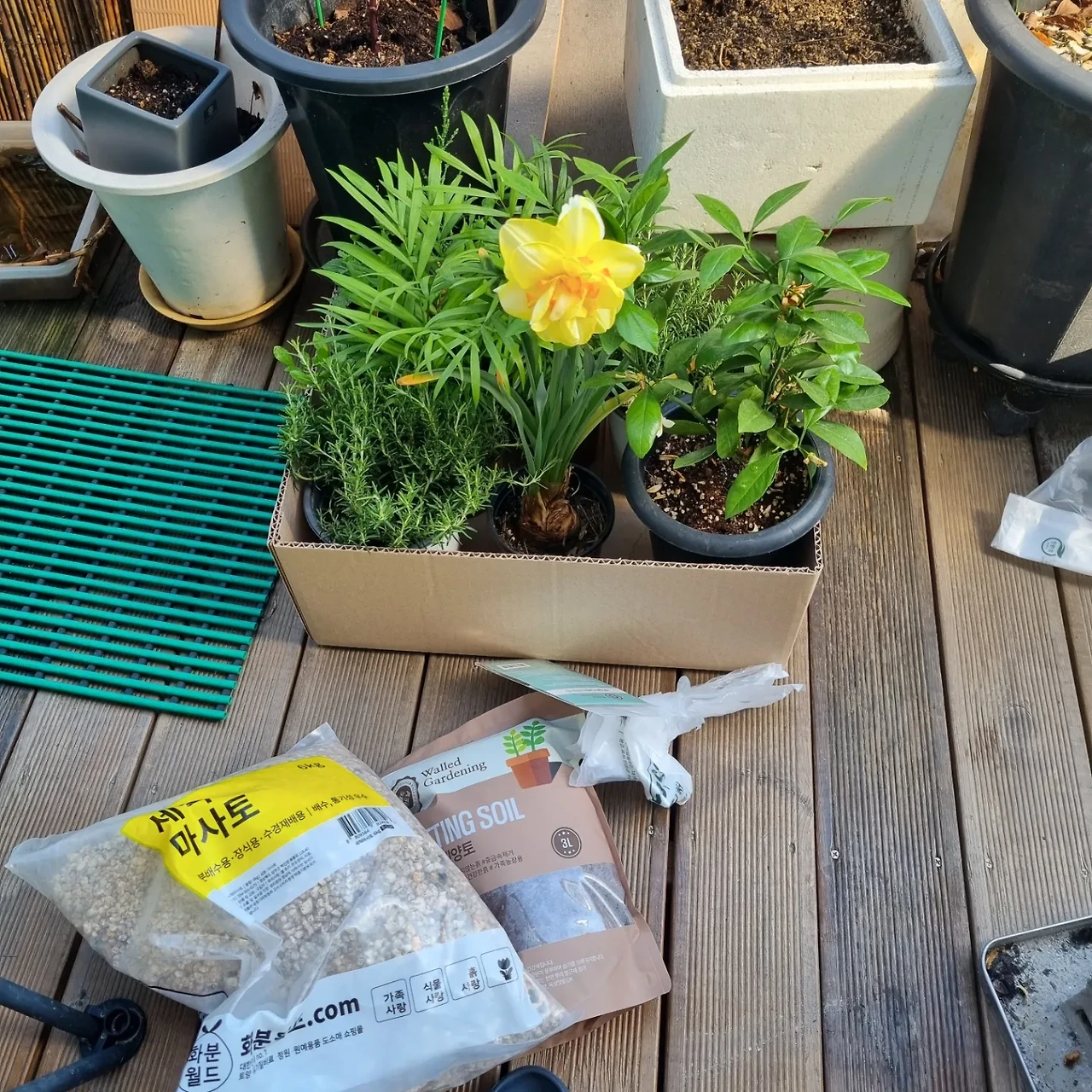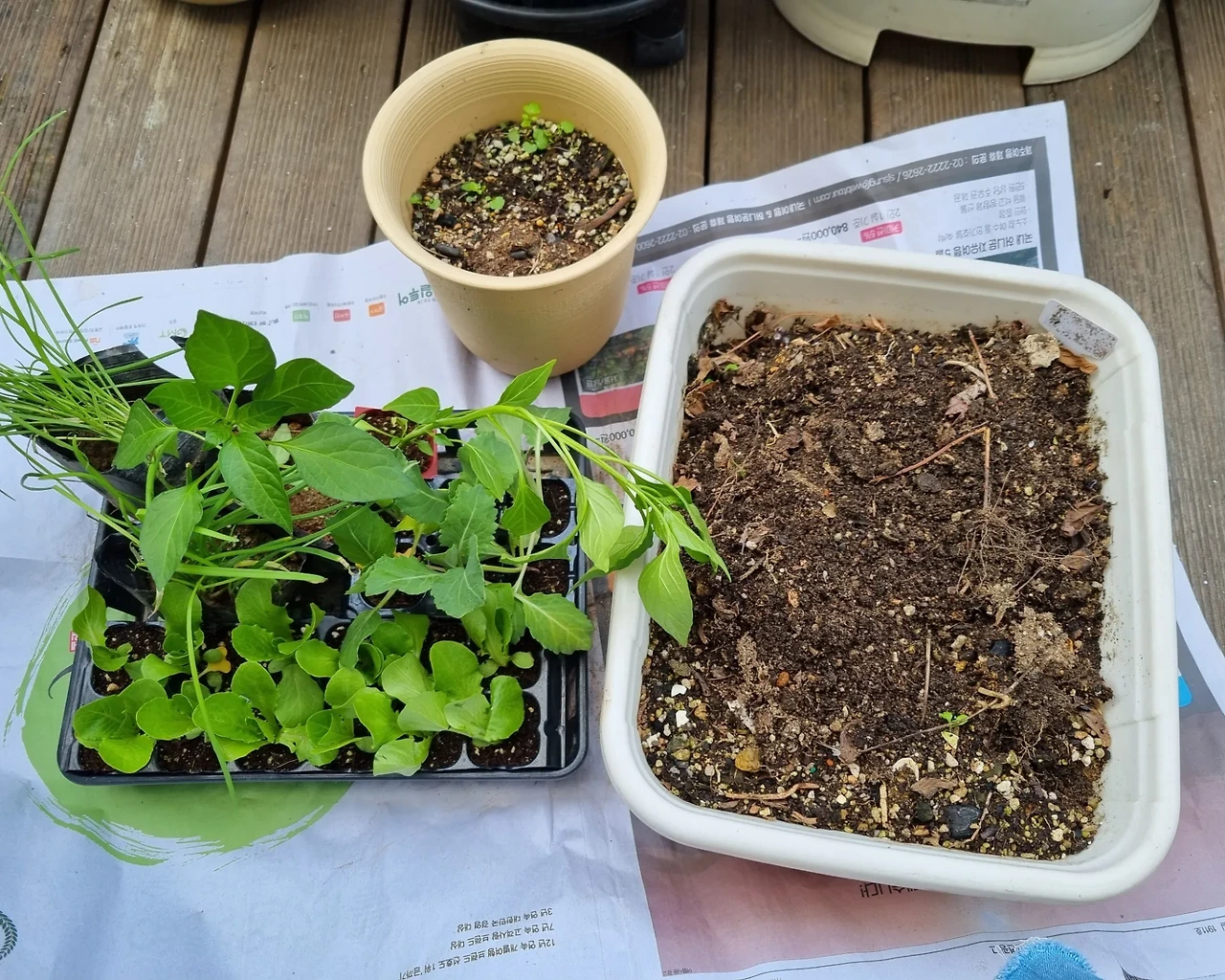 어제는 테라스 화분에 모종을 사다 심었다,