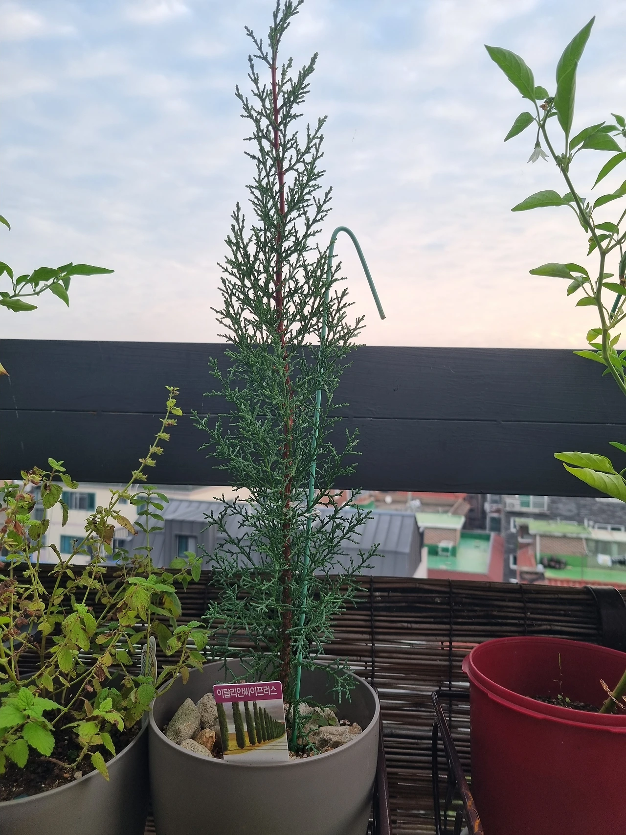 좌:이태리 싸이프러스 나무, 우측은 참외