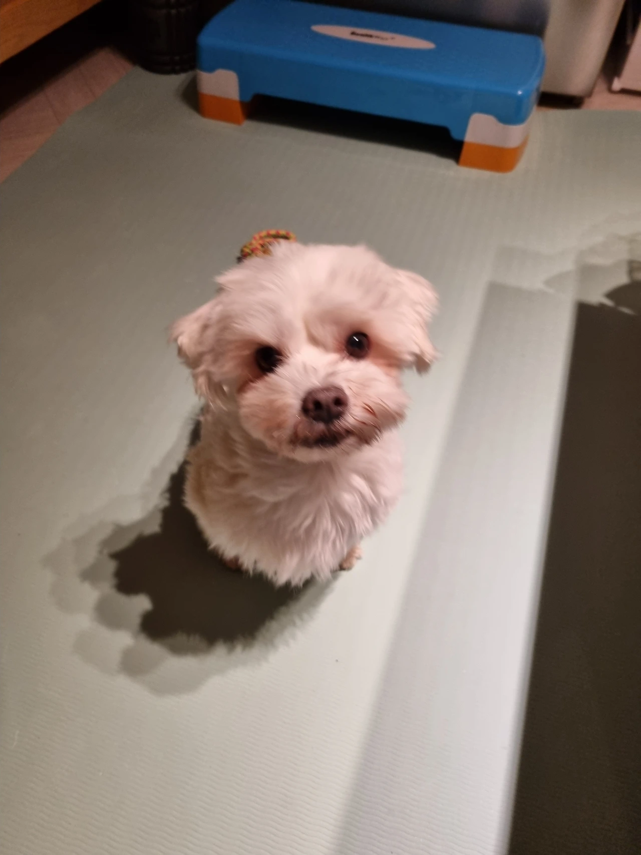스트레칭을 좀 하려고 매트에 있는데 강아지가