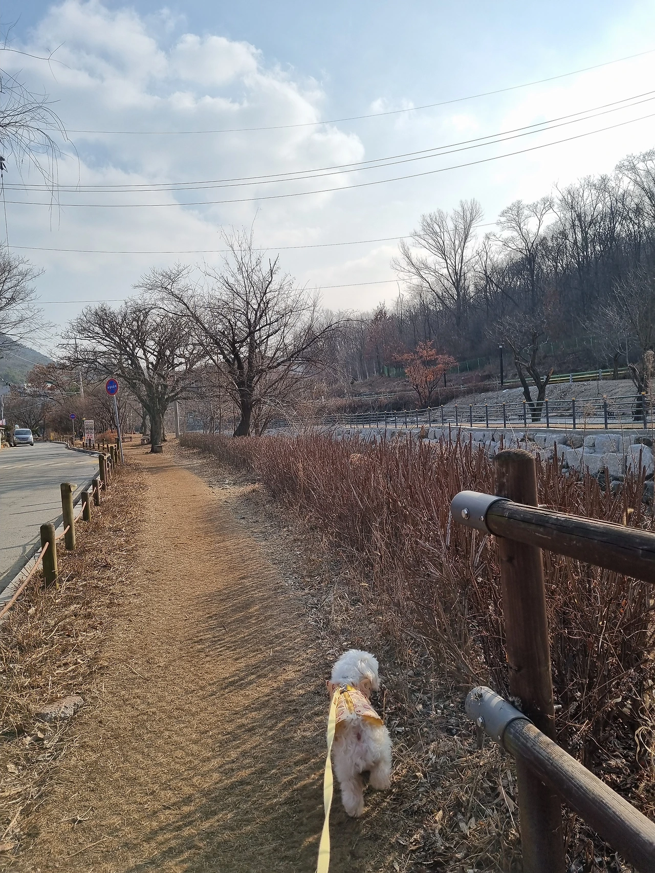 달린 리드줄만 믿고 오늘 산책 때도 날뛸 거