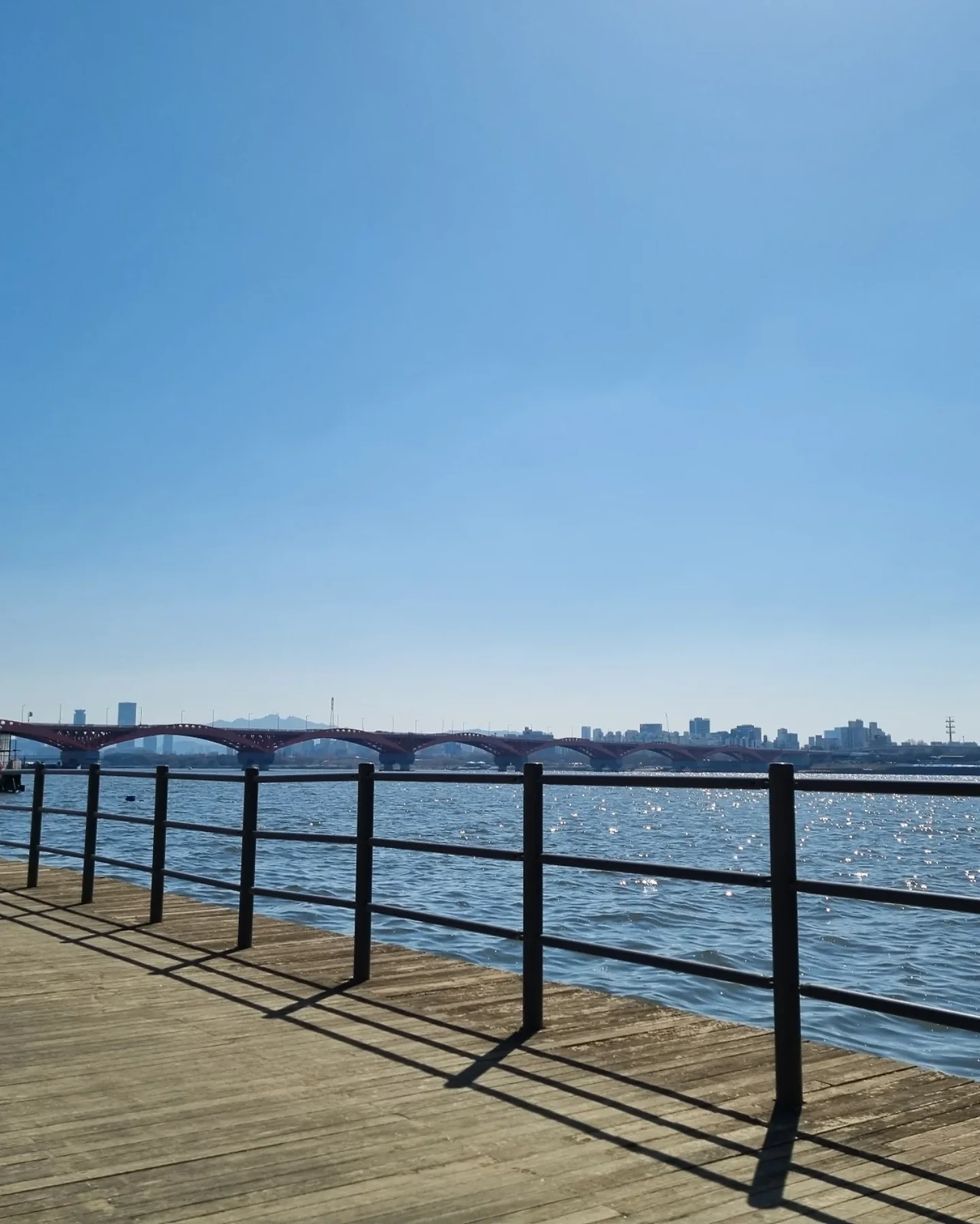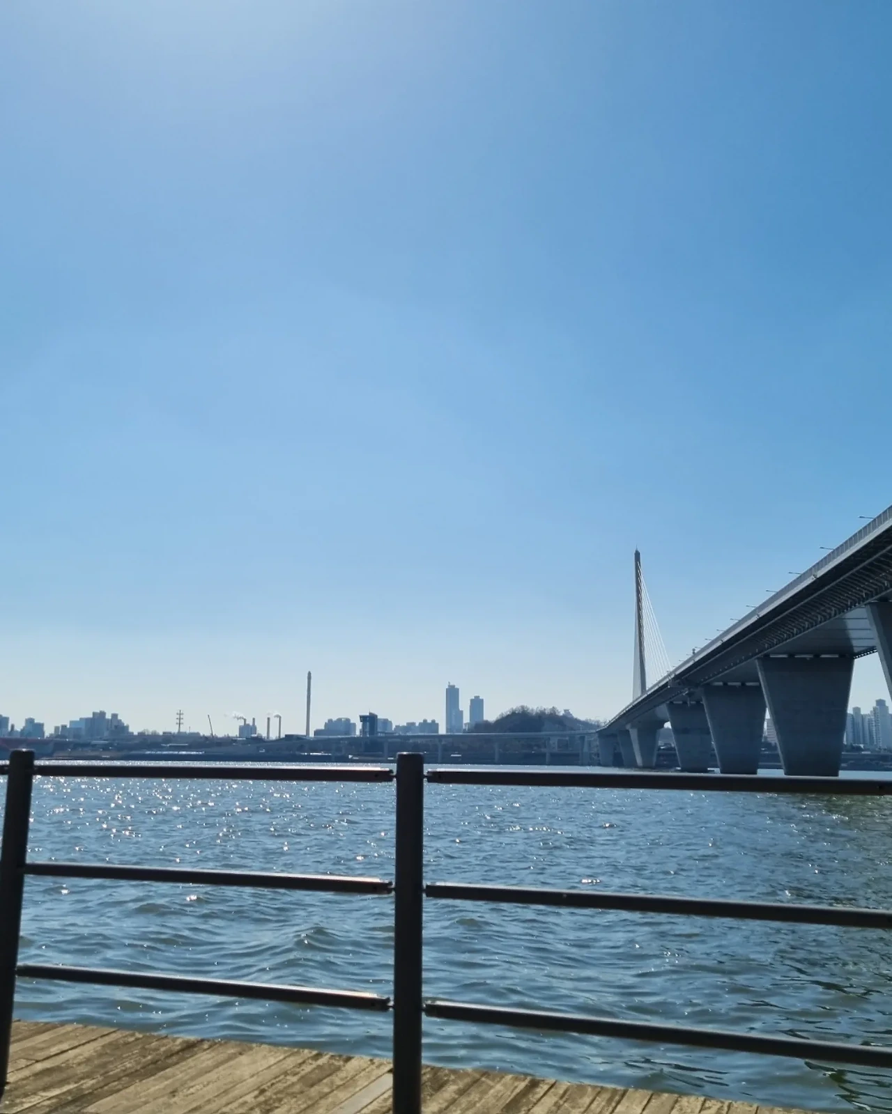 한강이 햇살을 받아 낮에 별이 빛나고 있는 거같다.