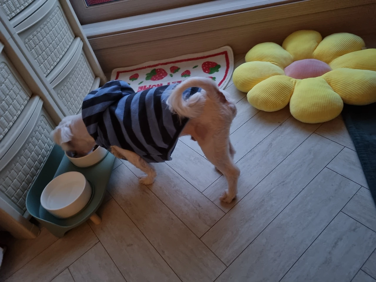 사료와 물을 잘 먹고, 집안 이곳저곳을