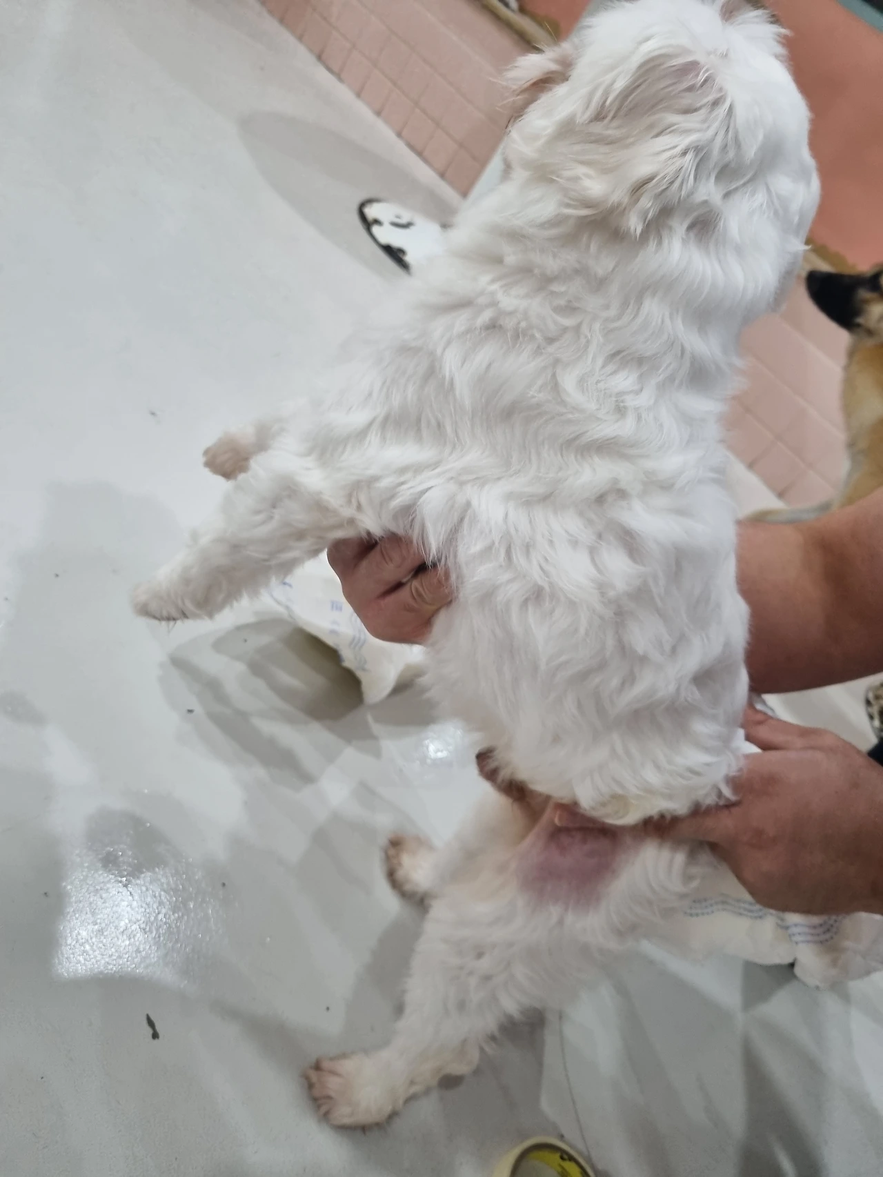 입양전 토리는 알수없는 질환으로 다리에 떨이 빠진 상태였다..