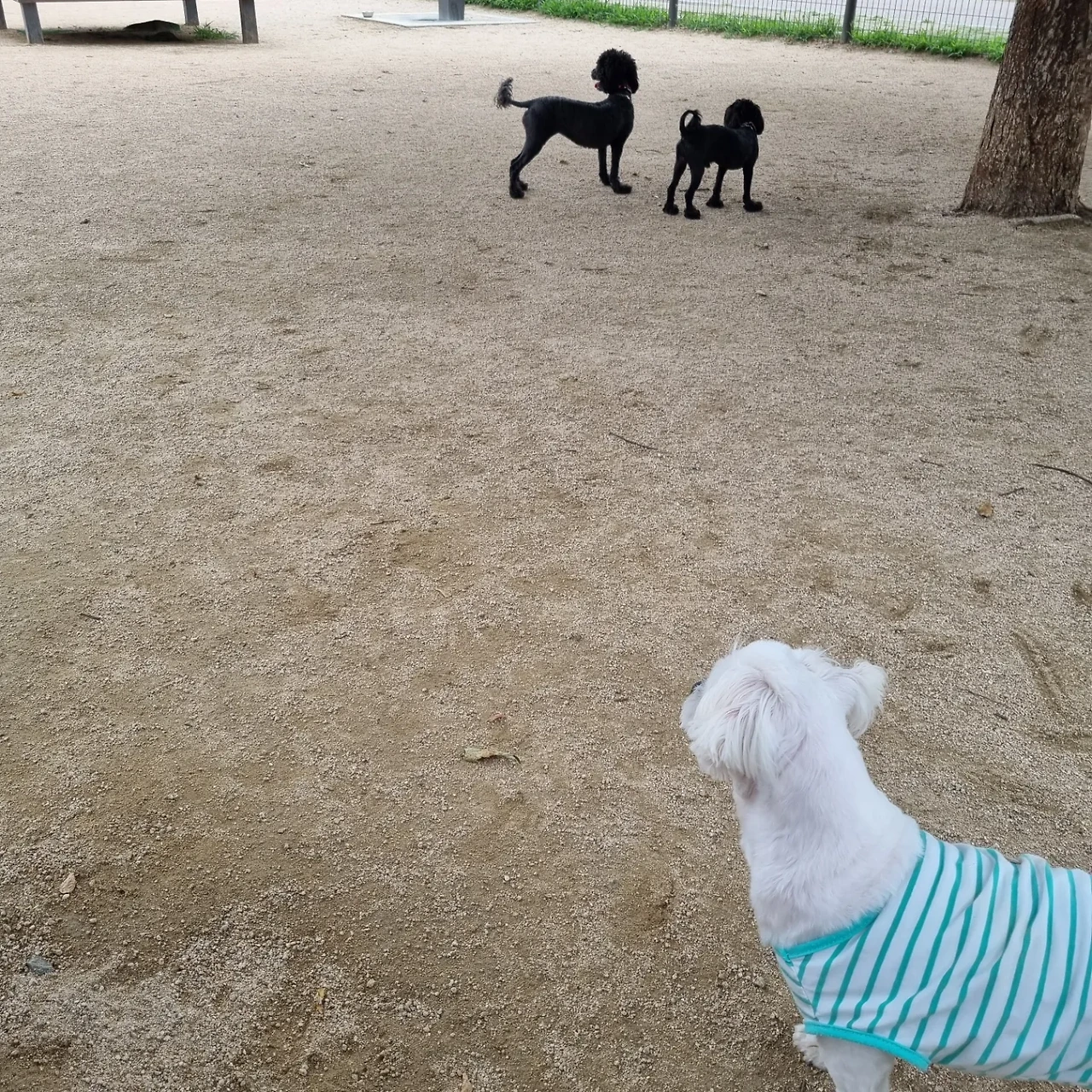 우측: 때로는 운동장에 토리 혼자인 경우도 드물게 있다.