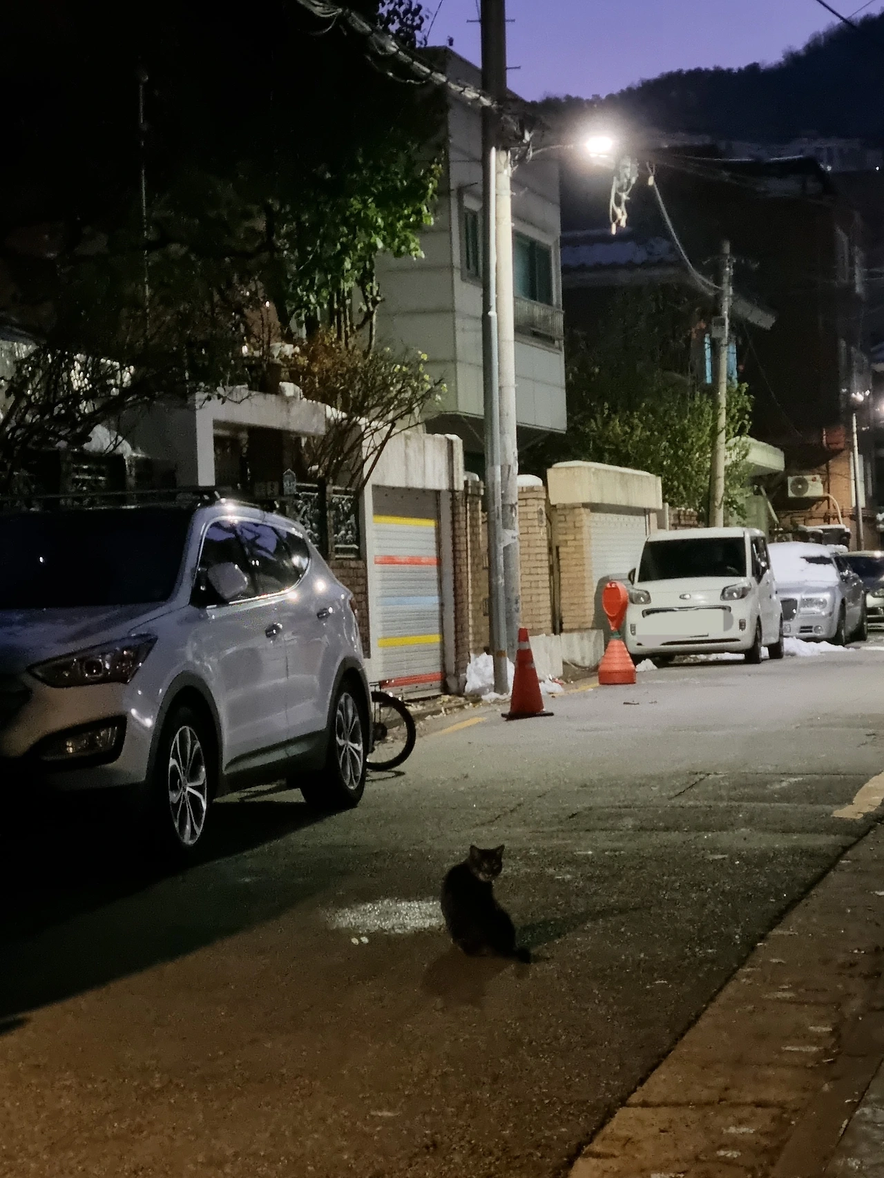 폭설이 녹고 난 뒤에 새벽 골목길은 싸늘하기 짝이 없는데 넌 왜 거기 있니?!