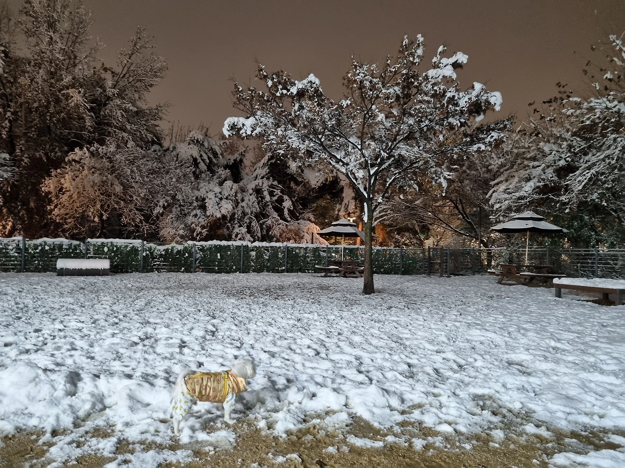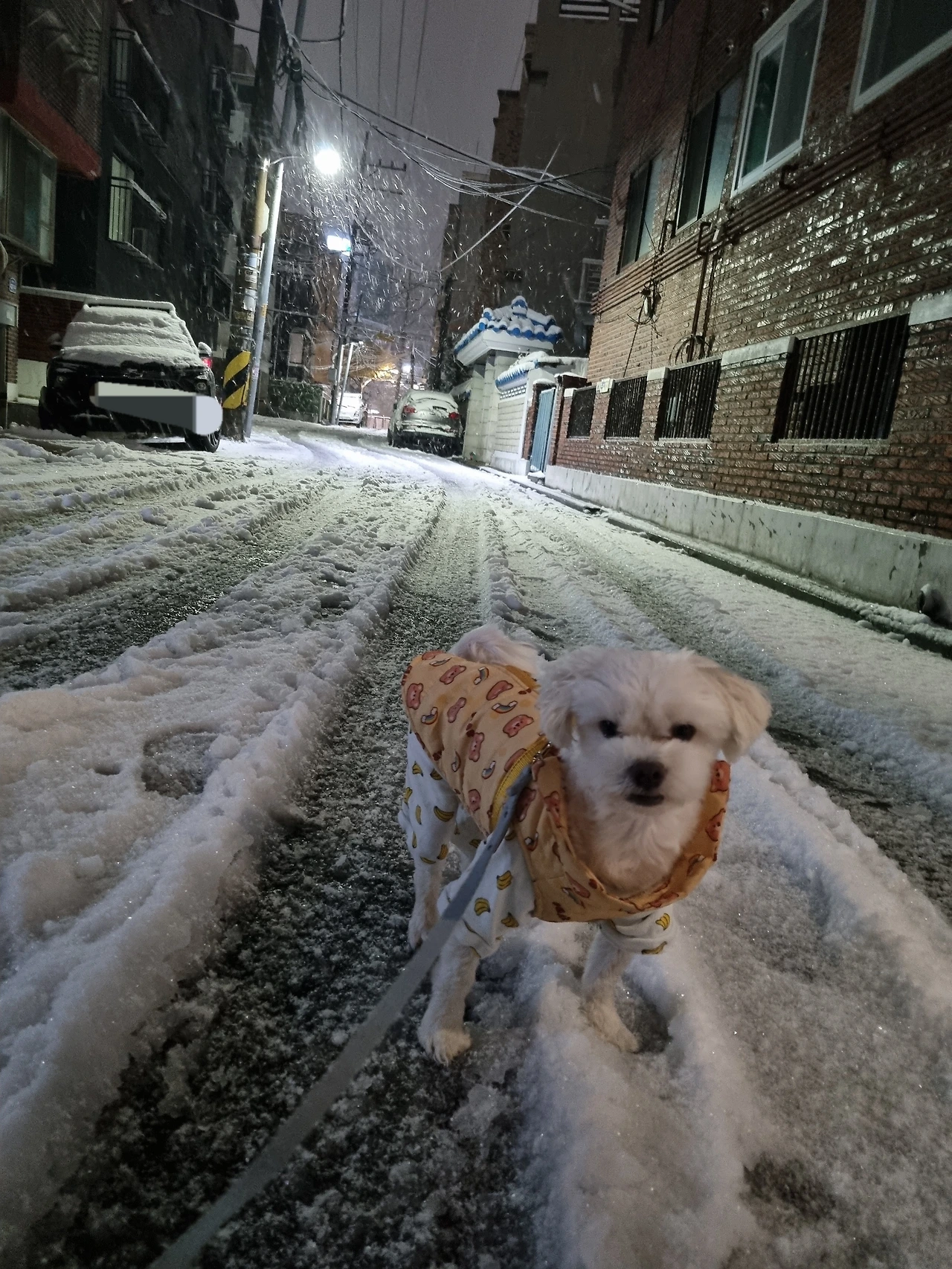 눈이 이렇게 왔지만 새벽 산책 쉬누러 가야겠지?! 집에선 안되겠니?!;