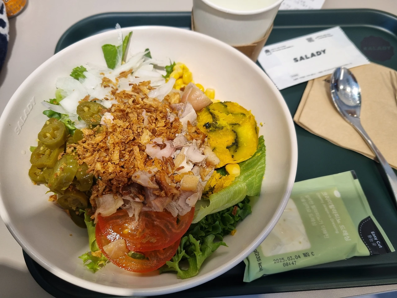 근처 샐러드 가게에서 샐러드를 먹고