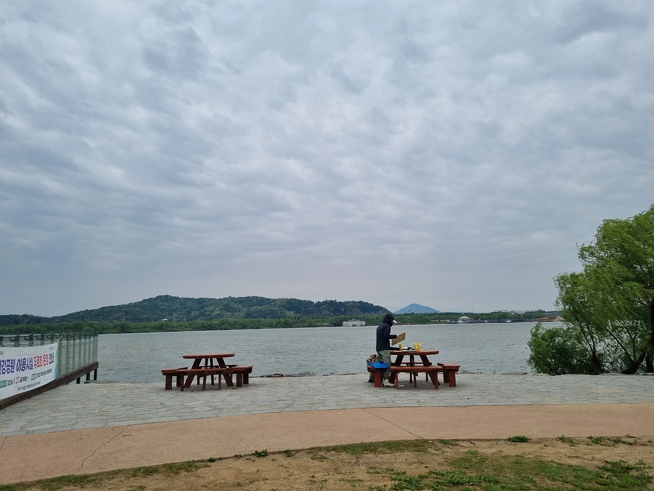 한강을 마주하고 있는 공원은 한강 옆으로
