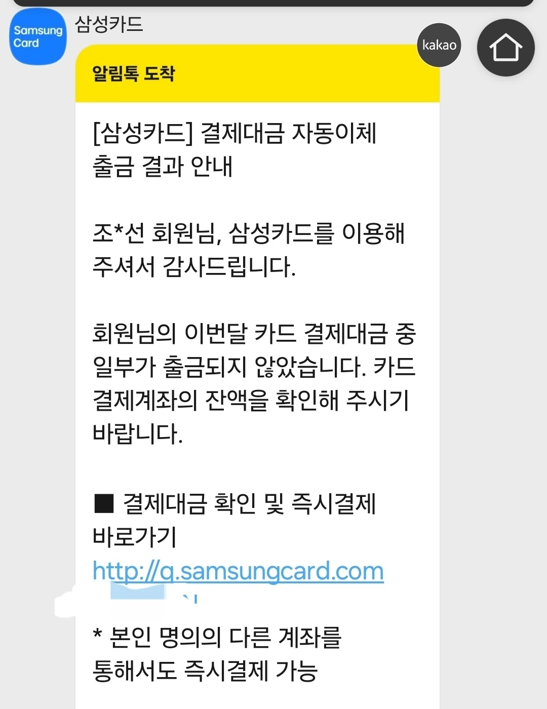 핸드폰 문자에 오늘 카드값 나가는 걸 깜박해서