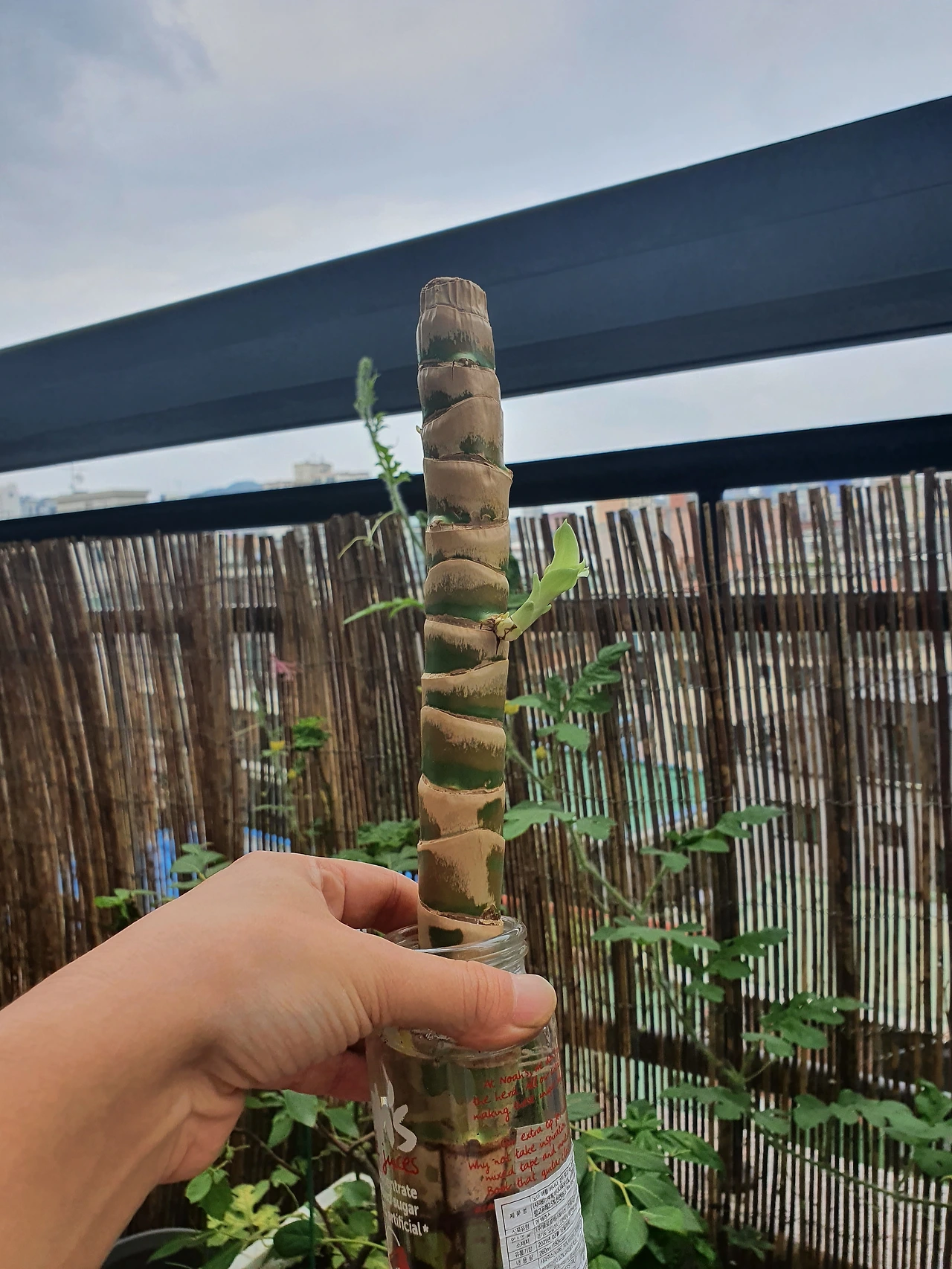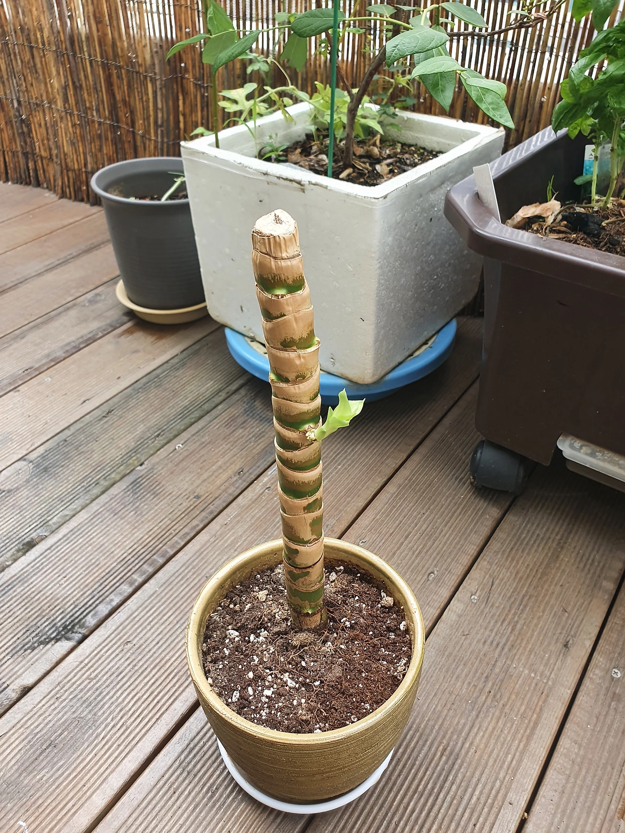 작년 추석때 잘라온 행운목에 싹이 났다.