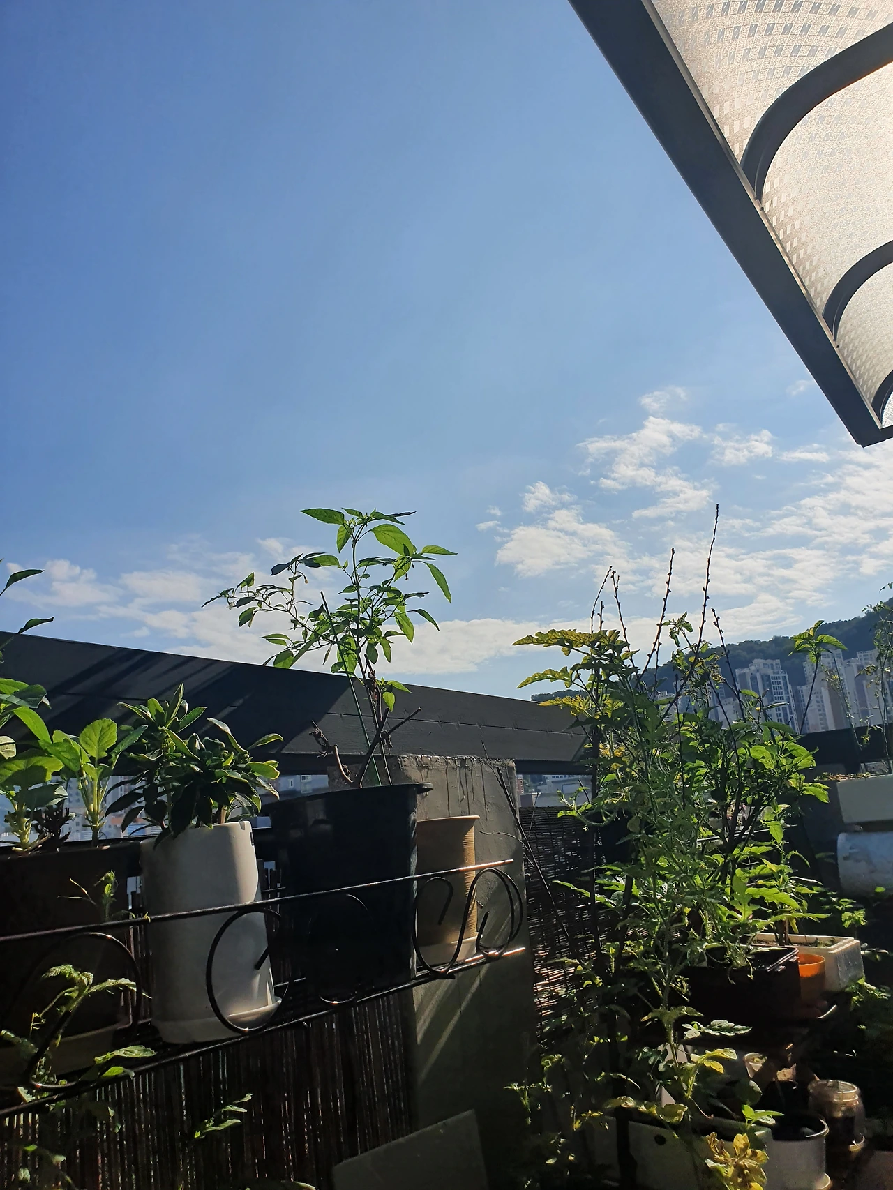 여름에 테라스에서 키우는 상추, 토마토, 고추
