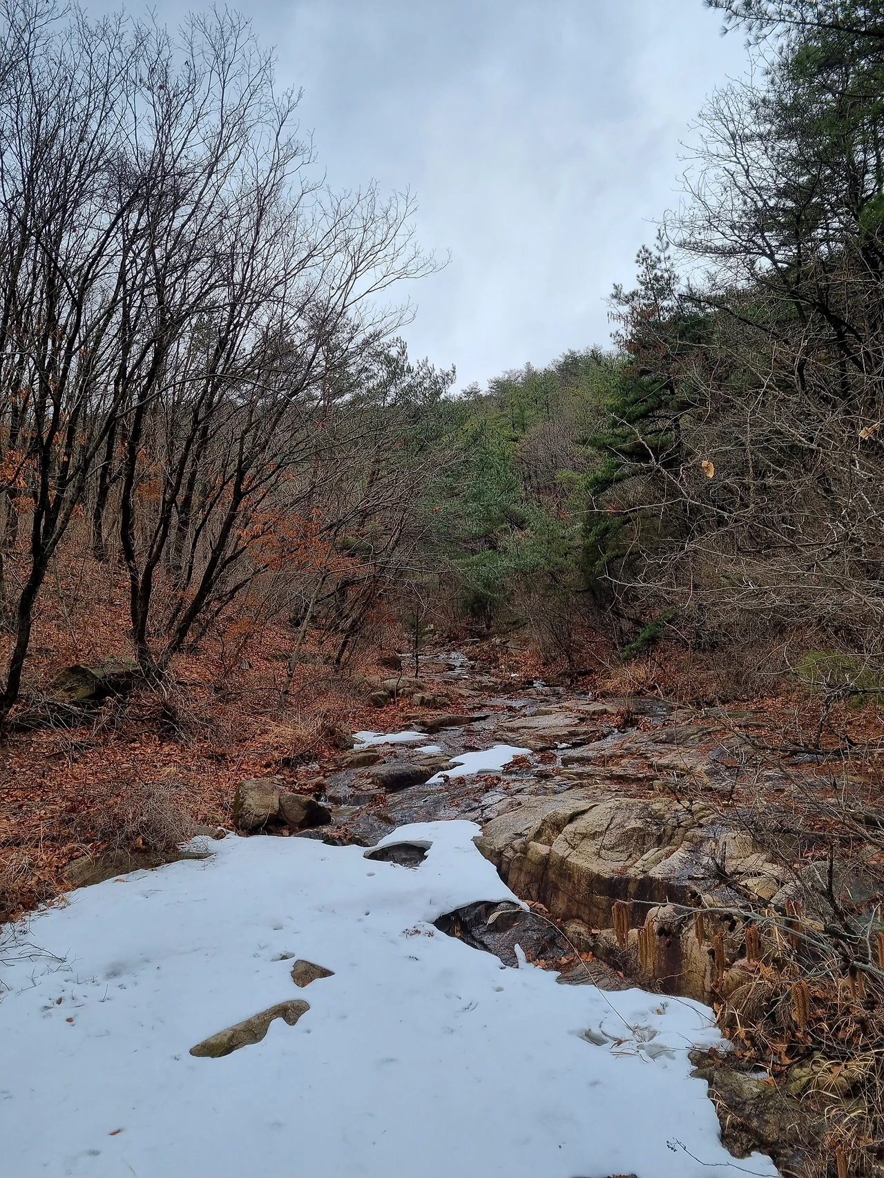 둘레길 입구에 차를 주차하고 혼자 계곡