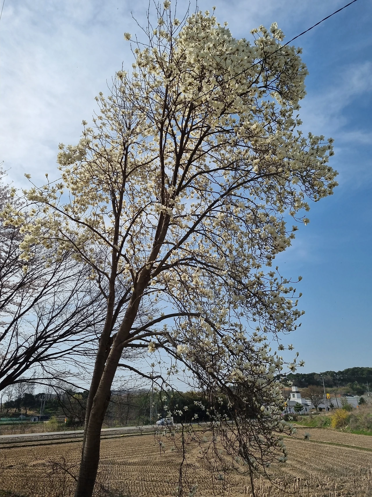 사찰 입구에 거대한 목련꽃이 만개얼마 전에 잠깐 봤던 일론 머스크 엄마의