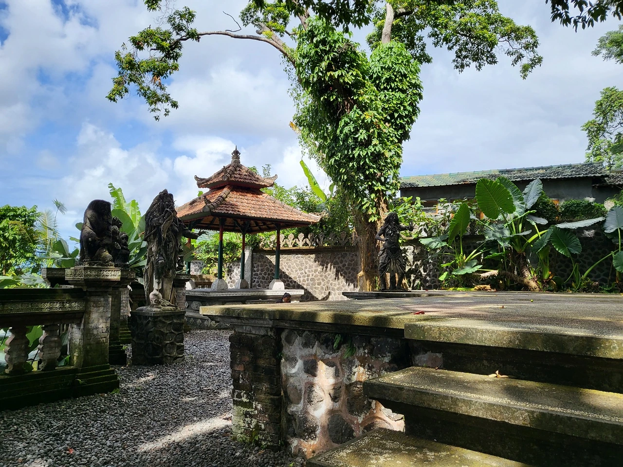 돌로 만든 장식들과 돌계단 그리고 푸르른 나무와 잎사귀, 그리고 발리 특유의 꽃 색갈이 한 곳에 어우러져 낯선 감각이 느껴졌다. 블랙과 화이트 그리고 그레이라는 무채색의 돌과 자연의 스펙트럼을 머금은 식물들이 한 곳에 모여 궁전을 장식하고, 가든을 풍요롭게 해주는 느낌이 들었다. 시각적으로나 감각적으로 새로운 경험이었다. 마냥 아름답다는 표현보다, 정말 특별하고 이국적이고 한 번도 살아보지 않은 과거로 돌아가 왕족들의 화려함과 여유를 만끽하는 삶을 상상해볼 수 있었다. 물론, 유럽이나 중동 혹은 인도처럼 아주 화려한 장식들로 위압감과 신성함을 동시에 주는 느낌이 아닌, 자연의 자연스러움과 아침 이슬 내려앉은 돌의 축축한 분위기가 한편으론 기괴하기도 했다.
