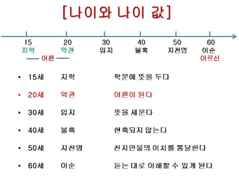 한국만큼 나이에 연연하는 나라도 없다. 아마도 유교 사상에 입각한 문화이기 때문이리라. 찬물에도 순서가 있고 삼강오륜에 나오는 장유유서는 어른과 아이 사이에 사회적 질서와 순서가 존재한다고 명시하고 있다. 또한 윗사람을 존경하고 나이를 먹을수록 나잇값을 해야 하고 등의 나이와 관련한 예의범절을 어렸을 때부터 가르쳤다. 성균관 시대와 같이 관례를 치르고 성인이 되어 특정 나이가 되면 해야 하는 일들을 교육하지는 않지만 특정 나이가 되면 이뤄야 하는 것들은 현대 사회에도 암묵적으로 존재한다. 예를 들어 고등학교를 졸업하면 대학에 가야 하고 대학을 졸업하면 취업을 해야 하고 취업을 하면 결혼을 준비하고 결혼을 하면 아이를 낳고 하는 일련의 숙제 같은 것들. 물론 서양 사회에서도 어른이 되어가는 일반적인 과정이 존재한다. 그리고 그 모습은 우리나라와 별반 다르지 않다. 하지만 유난히 한국 사회에서는 나이와 그 과정을 연결시킨다. 그래서 나이에 대한 압박감을 느낀다. 특정 나이 때 제때 해치우지 않으면 뒤쳐지거나 낙오자로 취급받을 테니까.