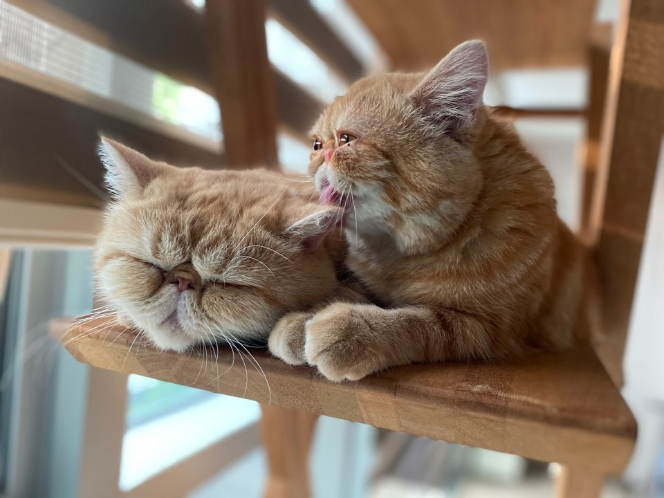 사람들이 대체로 피로 이어진 가족을 일구고 사는 것과 달리 동물들은 거의가 혈연과 떨어져 인간과 맺어진다. 나는 엄마와 딸 고양이가 이 덥고 습한 여름 부둥켜 앉고 서로 그루밍하는 것을 보는 게 정말 신기하다. 푹푹 찌는 날 캣타워 꼭대기에서 꼭 붙어 집사를 소외시켜도 좋다. 행복한 고양이도 좋지만, 행복한 고양이'들'은 더 좋다는 것을 두 아이들로부터 배운다.