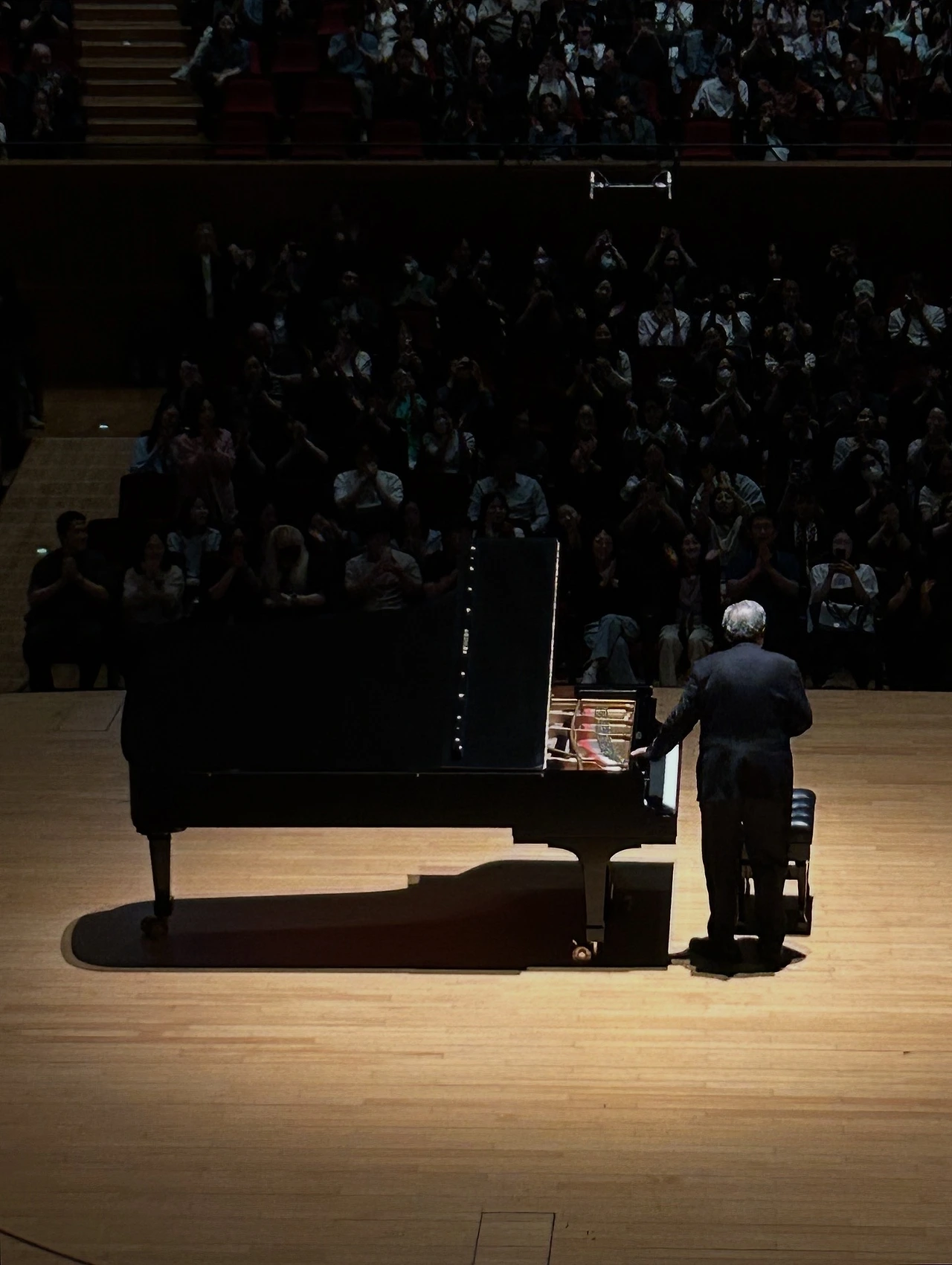 초식동물마다 포식자가 다가올때 도망가는 임계거리가 다른 것처럼 작품과 음악가의 사이에는 각 곡마다 정해진 거리가 있는 것 같다. 어떤 곡은 마치 음악을 집어삼킨것처럼 내면화해야하고 또 다른 곡은 적당히 멀찍이서 응시하듯 담담히 그려내야 할 터. 마음이 앞서 너무 빨리 다가가면 음표들이 달아나버리고 지나치게 멀리에만 서있으면 곡을 붙들 수 없다. 이 알맞은 거리를 체화하기 위해 피아니스트는 대체 몇번이나 연습을 하고 얼마만큼 혼자 고뇌를 해야했을까. 젊은 청년이 하얗게 센 머리와 느릿한 걸음의 노인이 되기까지, 예핌 브론프만은 모든 곡에 다가섰다가 물러나기도 하며 마침내 그 적정거리를 찾아내었다. 섬세한 아라베스크부터 휘몰아치던 프로코피예프, 앵콜의 서늘한 차이코프스키와 광폭한 리스트까지. 오늘의 연주를 들을 수 있음에 감사하며 앞으로도 모쪼록 건강히 아름다운 음악을 계속 들려주시기를 바란다. 아주 오래오래.