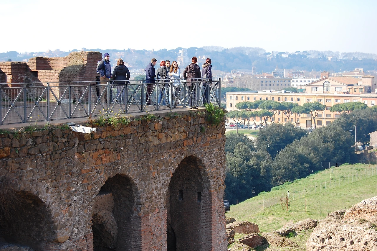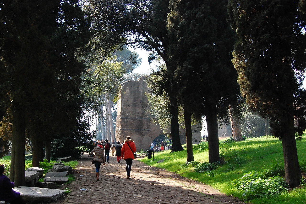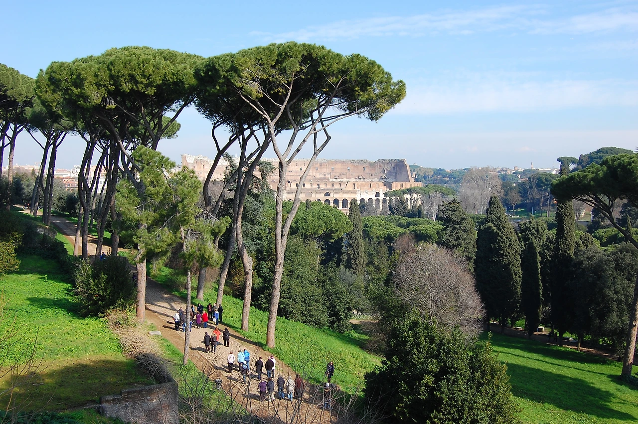 팔라티노 언덕에 올라가면 여러 종류의 침엽수로 이뤄진 숲 터널이 나타난다. 그 사이로 잘 다듬은 돌을 촘촘하게 깔아놓은 길이 단정하게 나 있다. 길 끝에는 U자를 뒤집어놓은 것 같은 아치만 남은 건축물 잔해가 슬픈 얼굴을 하고 서 있다. 잔디밭에서는 편안하게 자리를 잡은 관광객들이 여행 안내인의 설명에 귀를 기울이고 있다.