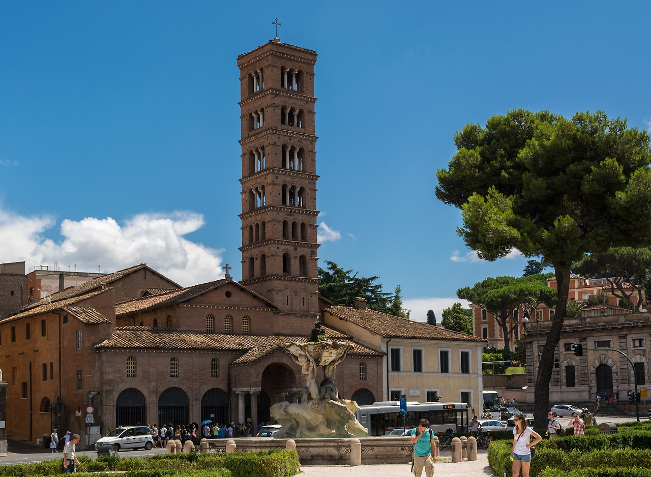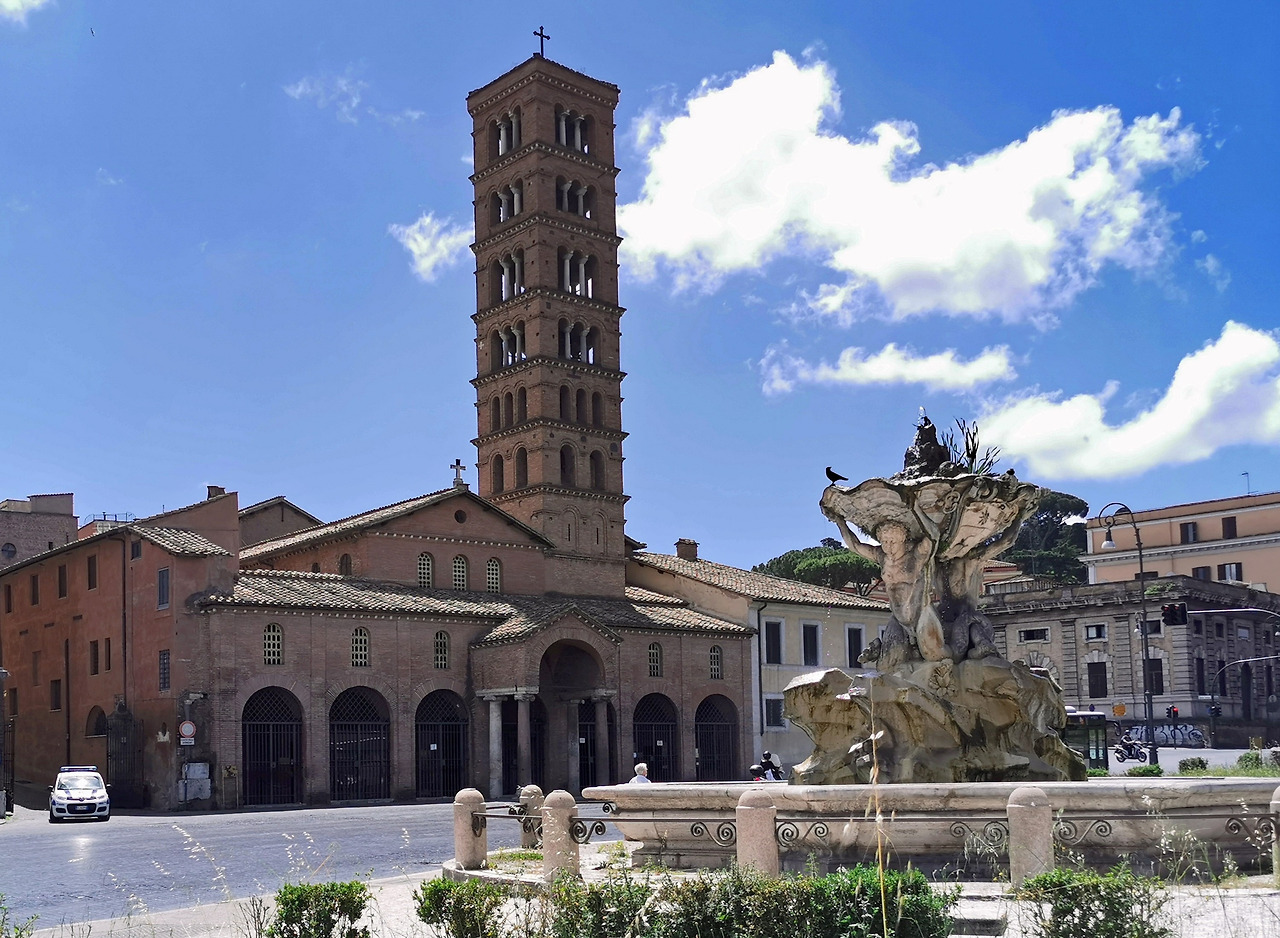 광장 맞은편에는 이색적인 긴 탑을 가진 고색창연한 교회가 우뚝 서 있다. 6세기로 거슬러 올라갈 정도로 오랜 역사를 가진 산타 마리아 인 코스메딘 교회다.