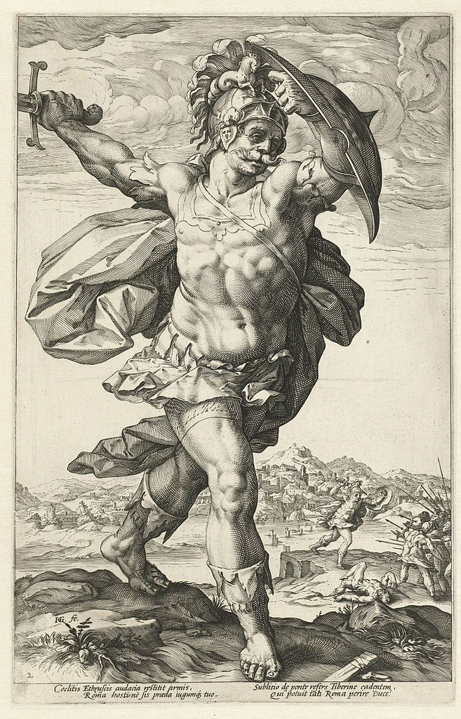 로마군은 도시로 달아났다. 그들이 다리를 지나려 할 때 적군이 강력하게 공격해 왔다. 로마는 함락의 위기에 빠졌다. 만약 적군이 달아나는 로마군과 함께 성 안에 들어오면 함락은 시간문제였다.