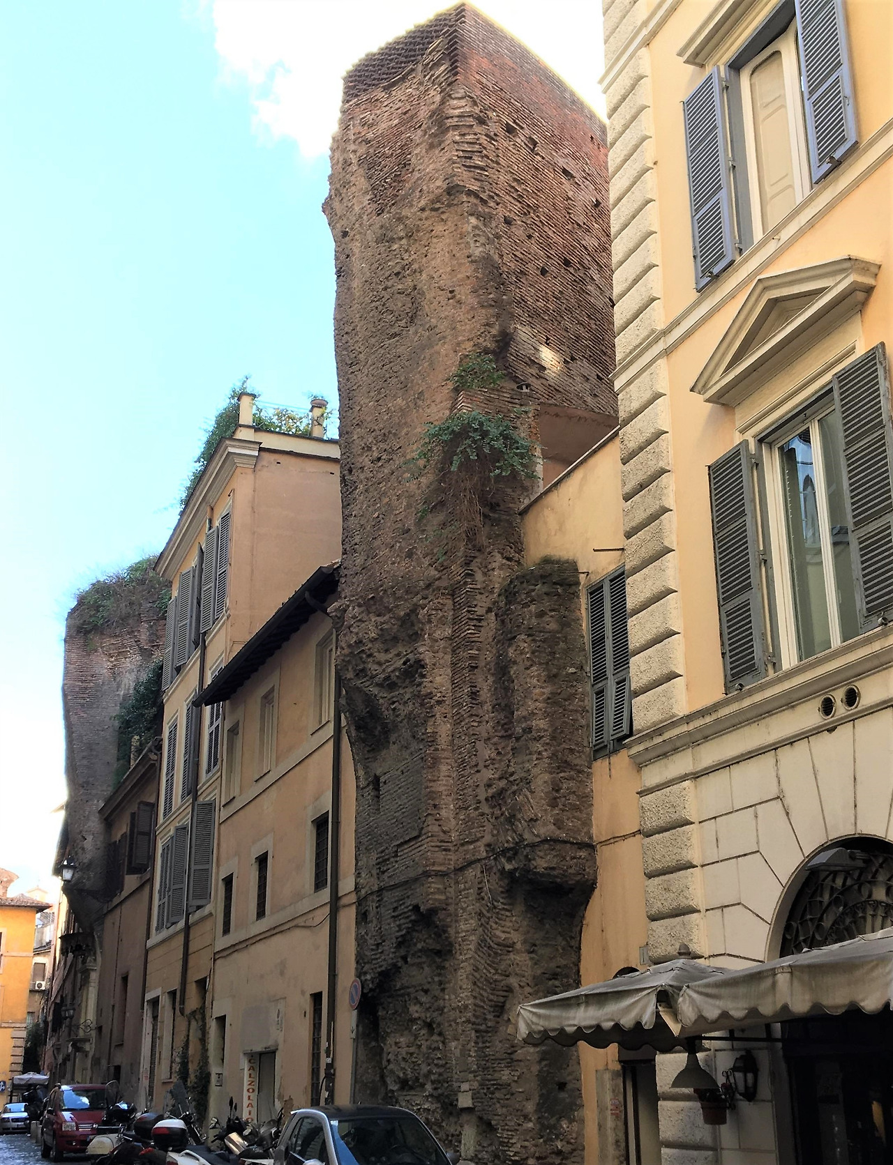 이제 마지막으로 아그리파 욕장의 흔적을 찾으러 가 보자. 앞부분에서 설명했듯이 라르고 디 토레 아르젠티나에서 비아 데이 체스타리 골목이나 비아 디 토르 아르젠티나 골목 안으로 들어가 걷다 보면 두 골목을 연결하는 첫 골목이 나타난다. 비아 델 아르코 델라 키암벨라이다.