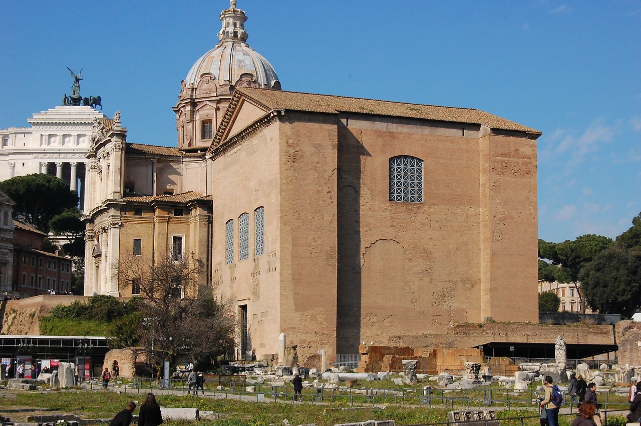 포로 로마노에는 로물루스 신전도 건설됐다. 로마 창시자 로물루스를 모신 신전은 아니었다. 기독교를 공인한 콘스탄티누스에 맞서 싸웠던 막센티우스 황제가 먼저 세상을 떠난 아들 발레리우스 로물루스를 위해 지어준 신전이었다. 이 신전도 527년 교회가 됐다. 지금 이름은 산티 코스마 디마아노다.