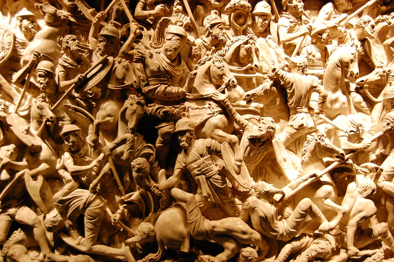 천하통일의 꿈을 꾸고 있던 콘스탄티누스는 312년 로마로 쳐들어갔다. 대권을 장악하려면 먼저 막센티우스를 제거해 로마 서부를 통일해야 한다고 생각한 것이었다. 그는 로마 외곽 밀비우스 다리 인근 평원에서 막센티우스의 16만 대군을 맞아 싸워 대승을 거뒀다.