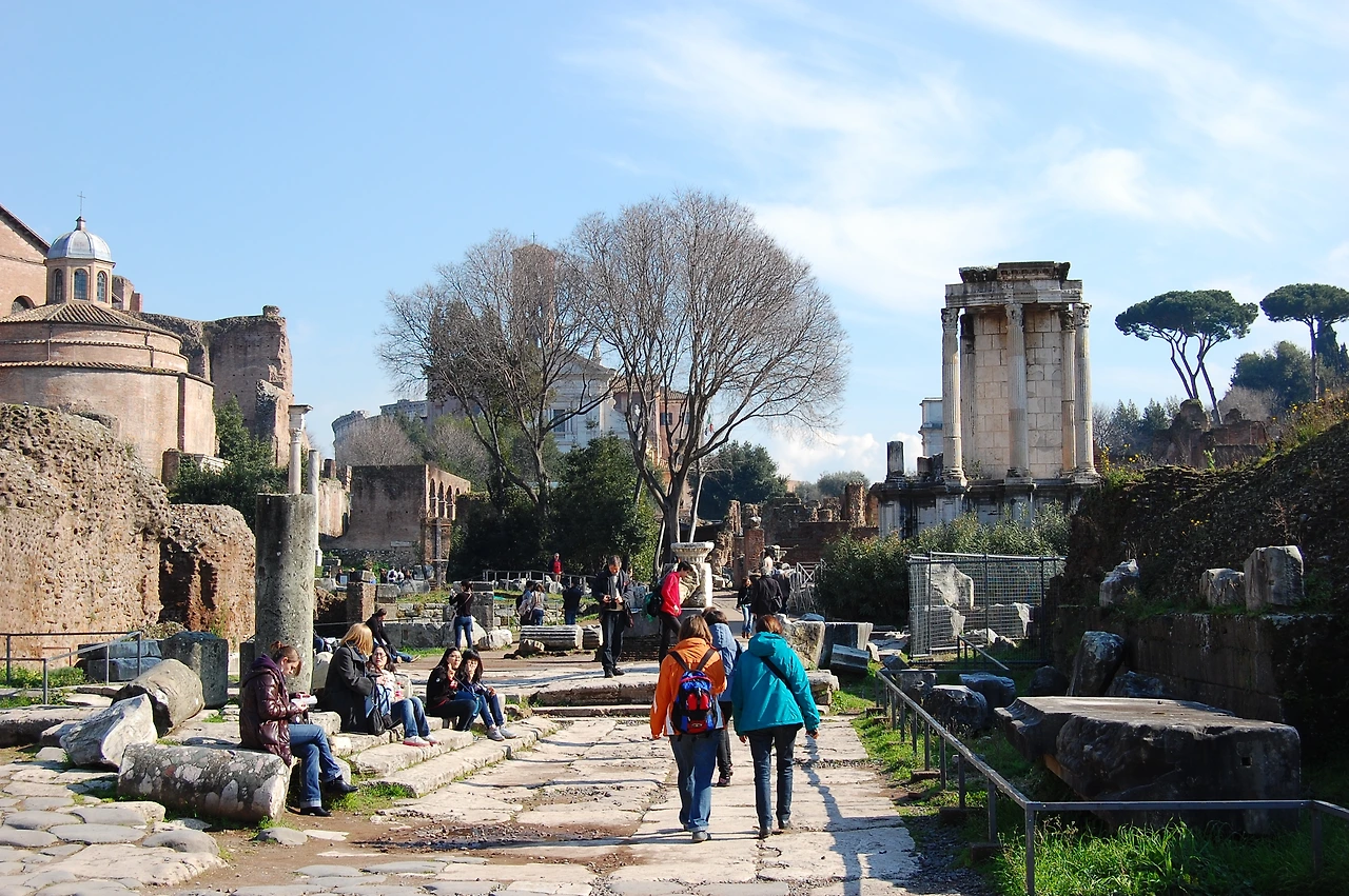 셉티미우스 세베루스 개선문은 2세기 말 코모두스 황제 암살 이후 혼란에 빠진 로마 제국을 안정시킨 세베루스 황제에게 바친 건축물이었다. 이 개선문은 포로 로마노에서 가장 보존이 잘 된 건축물이다. 꼭대기에 있던 동상은 모두 부서져 사라지고 부조의 색깔도 다 바랬지만 전체적으로 볼 때 원형을 잘 유지하고 있다.