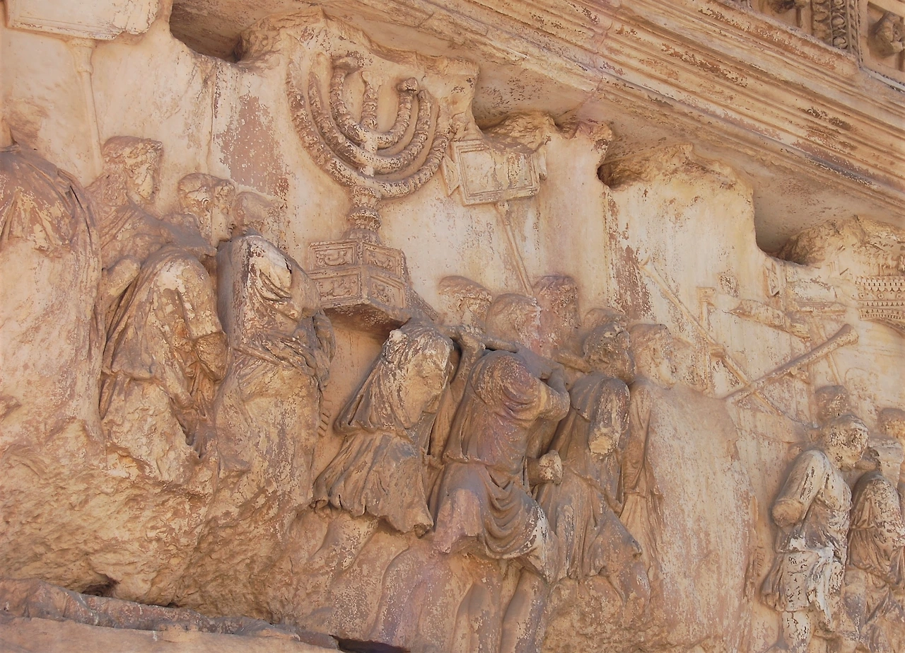티투스 개선문은 유대 학살과 탄압의 역사를 담고 있는 건축물이다. 티투스 황제는 즉위 이전인 67~70년 유대인의 반란을 진압했다. 그가 지휘한 로마군이 학살한 유대인은 자그마치 60만~100만 명이었다. 예루살렘은 벽 하나만 남기고 완전히 폐허가 됐다. 유대인은 고향에서 쫓겨나 떠돌이 생활을 하게 됐다. 티투스가 죽은 뒤 동생인 도미티니아누스 황제는 개선문을 만들어 형에게 헌정했다. 유대 전쟁 승리를 축하하는 역사 때문에 이곳은 디아스포라를 상징하는 건축물이 됐다.