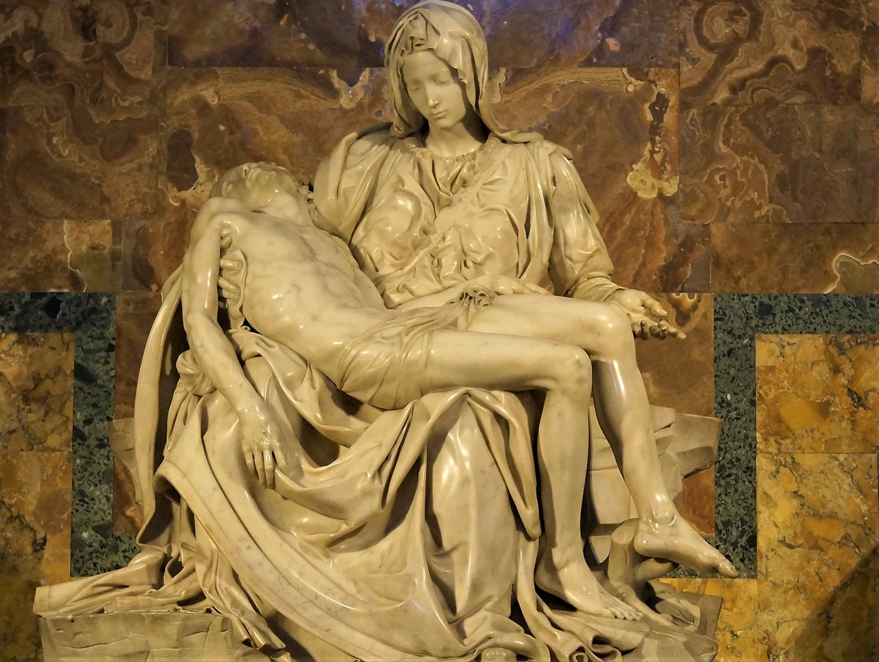 성 베드로 대성당에 가면 꼭 보아야 하는 작품이 있다. 입구에 있는 미켈란젤로의 ‘피에타’다. 죽은 예수를 안고 있는 성모 마리아의 모습을 새긴 작품이다. 뜻밖에 성모 마리아는 아들을 잃고 슬픔에 잠긴 어머니의 비통한 표정을 하고 있지 않다. 오히려 낮잠을 자는 아들이 깨기를 차분하게 기다리는 모습이다. 그녀의 얼굴에는 평화와 사랑이 넘쳐난다.