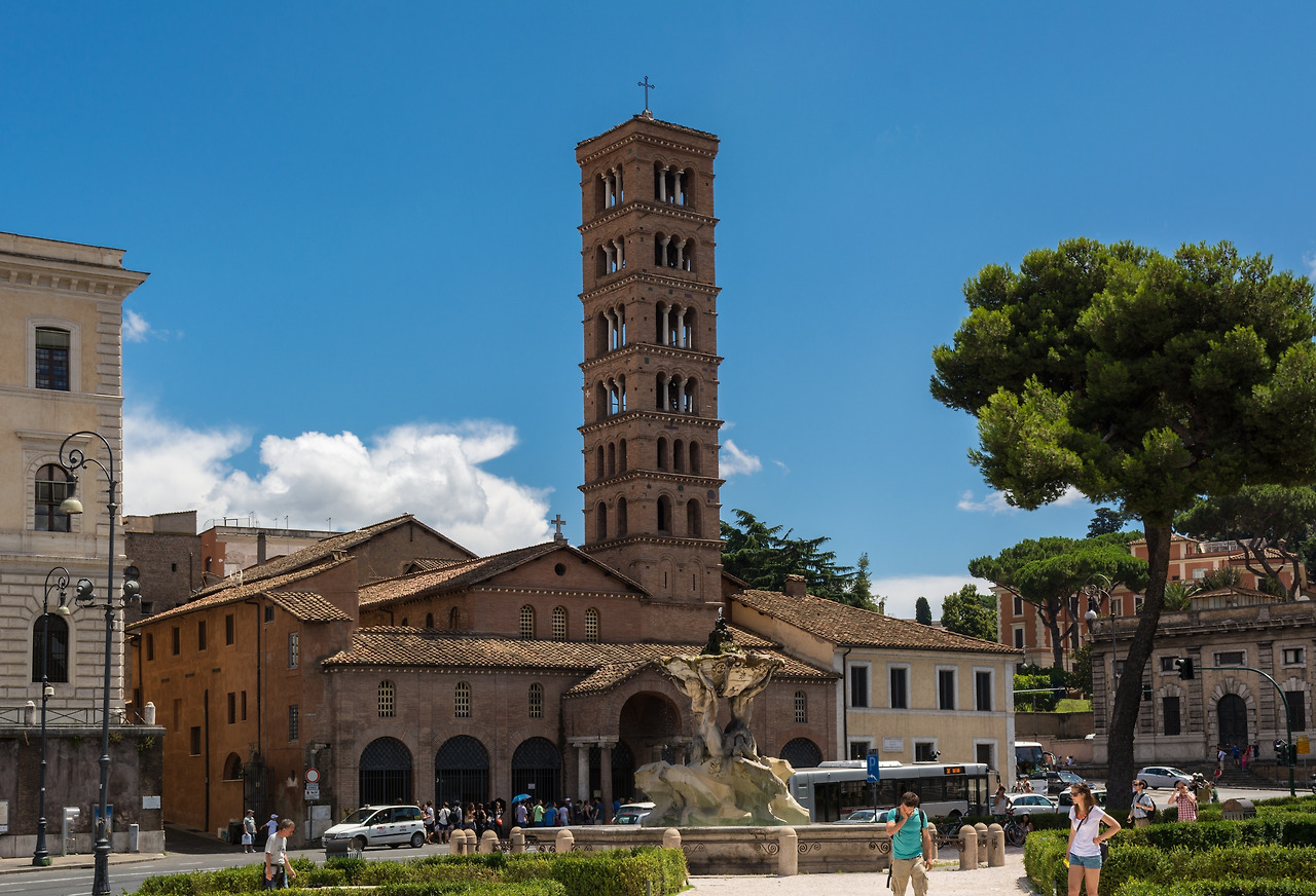 마르켈루스 극장을 거쳐 비아 루이기 베트로셀리 거리를 지나가면 작지도 크지도 않은 광장이 보인다. 광장 맞은편에는 이색적인 긴 탑을 가진 고색창연한 교회가 우뚝 서 있다. 6세기로 거슬러 올라갈 정도로 오랜 역사를 가진 ‘산타 마리아 인 코스메딘 교회’다.