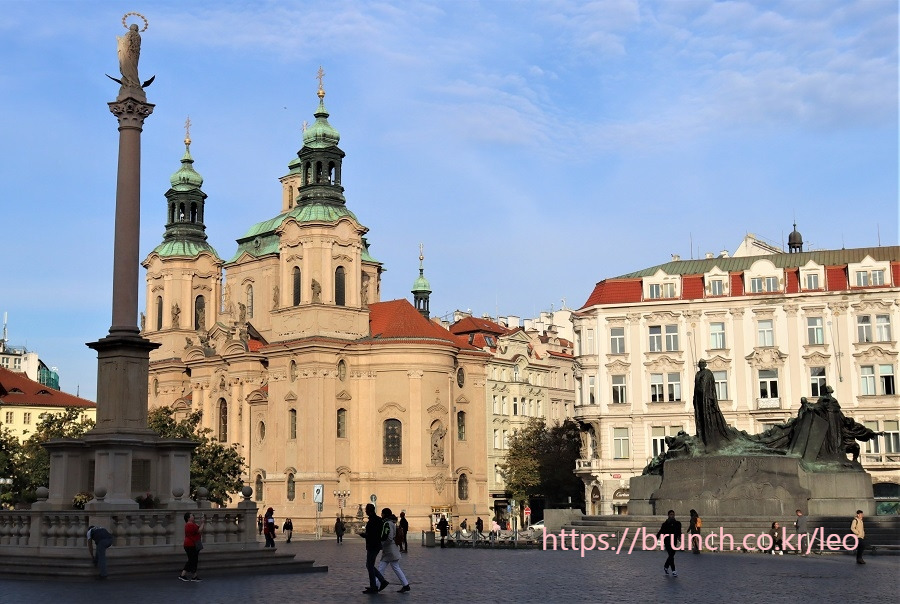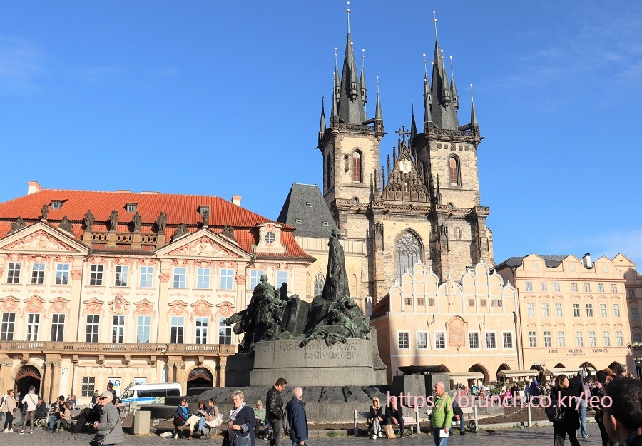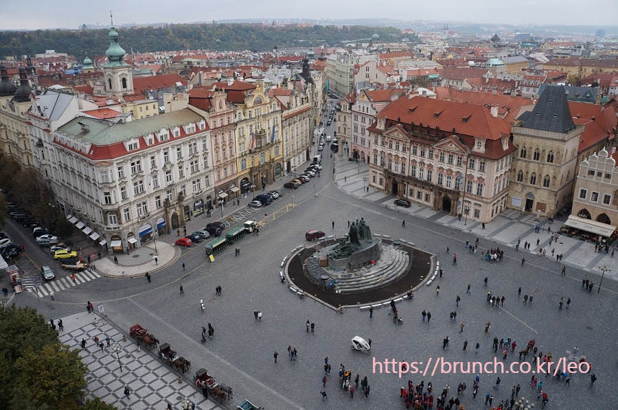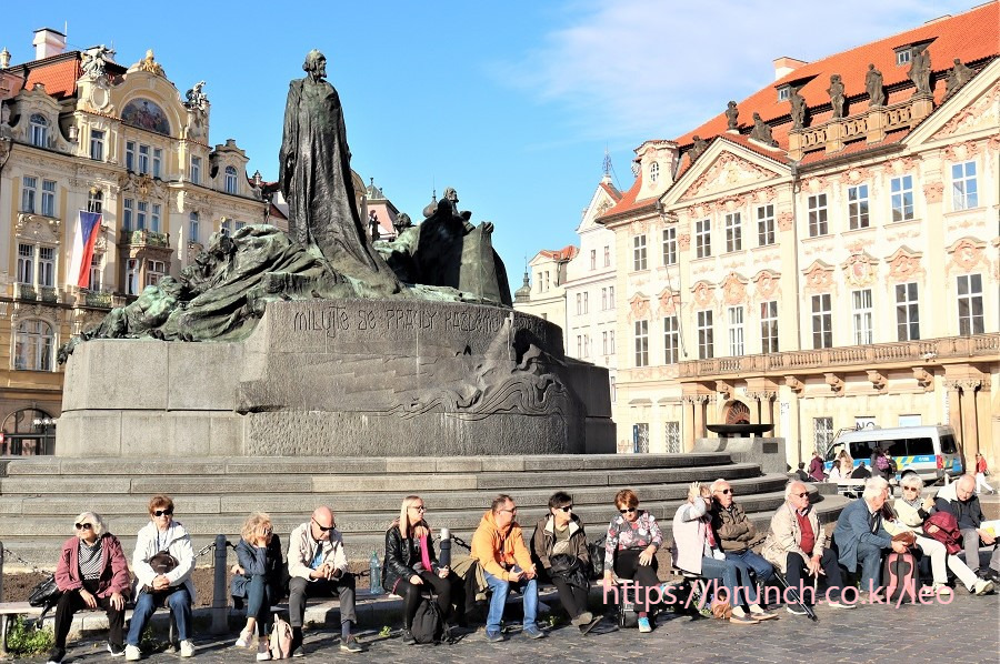 따스한 가을 햇살을 즐기면서 목을 축이기 위해 얀 후스 동상 주변의 벤치에 앉는다. 관광객은 물론 현지인도 많이 보인다. 가족끼리 나들이를 나와 잠시 쉬는 할아버지와 할머니, 어린 딸과 함께 쉴 새 없이 이야기를 나누는 엄마, 동상 주변을 계속 맴돌며 록음악을 시끄럽게 부르는 젊은이.