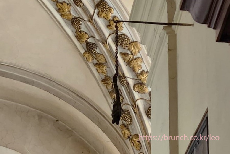 마침 성당에서 미사를 드리느라 문이 열려 있어 성당에 들어가 보았다. 정말 벽에는 팔이 붙어 있었다. 놀랍기도 하고 우습기도 했다. 더 머물렀다가는 웃음을 터뜨릴지도 몰라 조용히 밖으로 나왔다. 벽에 걸린 것은 정말 도둑의 팔일까? 높이 걸려 있으니 팔인지, 아니면 다른 물건인지 알 수 없다. 그렇다고 내려서 확인할 수도 없는 노릇이고.