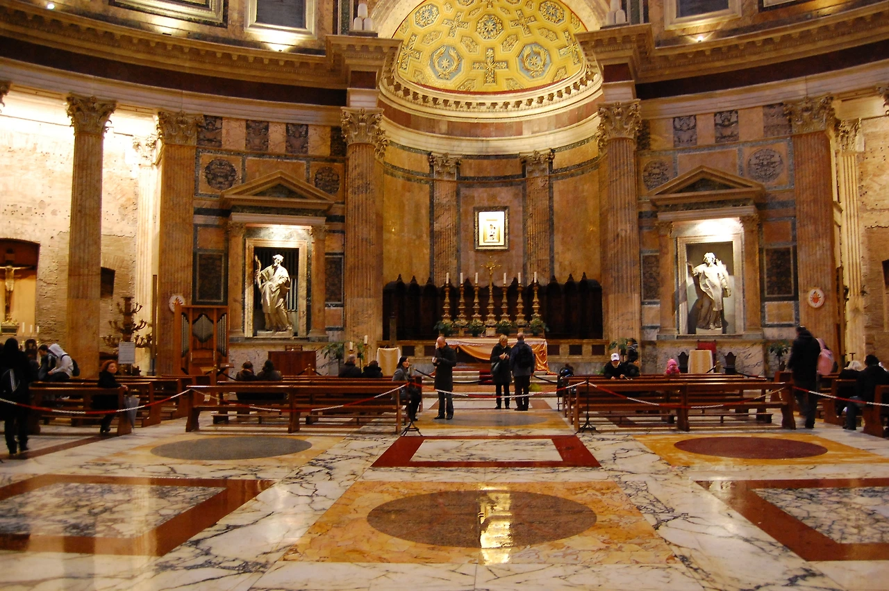 판테온은 곧바로 교회로 바뀌었다. 처음에는 이름이 ‘산타 마리아의 로툰다’였다. 나중에는 ‘성모 마리아와 모든 순교자를 위한 교회’로 바뀌었다. 판테온 맨 안쪽에는 제단이 설치됐고 성모 마리아와 예수 조각상도 세워졌다. 교황은 사순절 기간이 되면 판테온에서 특별 미사를 개최하곤 했다. 고대 로마의 대다수 신전이 파괴돼 사라졌지만 판테온이 부서지지 않은 것은 바로 이 때문이었다.