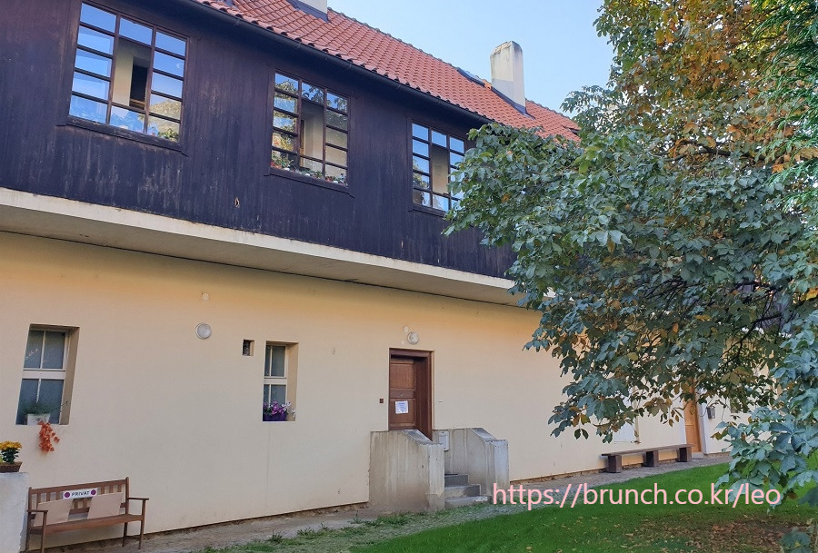 성 노베르 스트라호프 바로 옆은 호텔 모나스테리, 즉 수도원 호텔이다. 직각으로 붙은 두 건물 사이로 작은 틈새가 보인다. 계단이 연결된 걸 보니 다른 곳으로 이어지는 통로다. 혹시나 싶어 계단을 따라 내려가니 역시나! 계단 아래는 포호르젤레츠 거리다. 로레탄스카 거리로 이어지는 흐라드차니 중심지다. 이 계단을 몰랐다면 스트라호프수도원 정문으로 돌아가서 한참이나 걸어와야 한다.