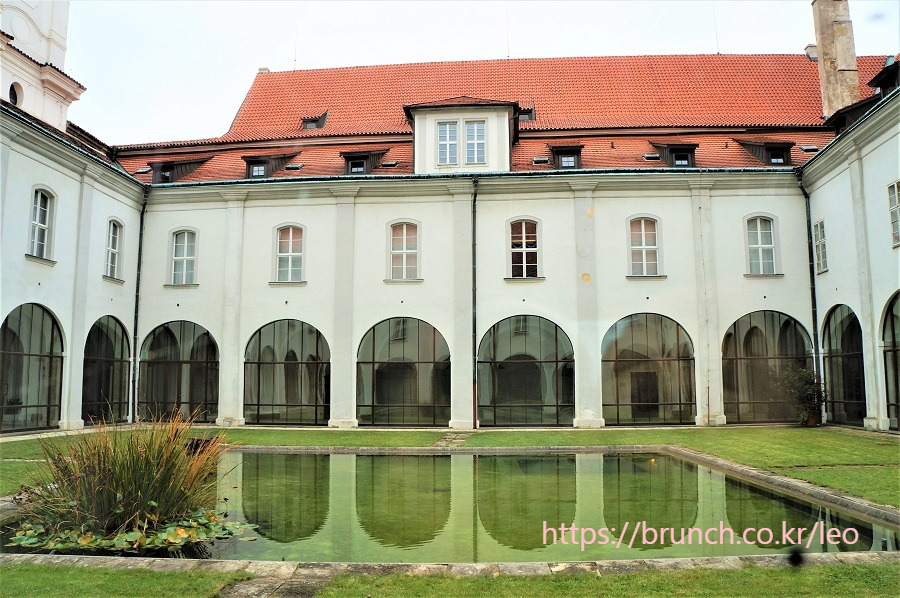 밤마다 네루도바 거리를 떠돈다는 목 잘린 두 유령의 은근한 시선을 느끼며 오르막길을 따라 스트라호프수도원을 향해 걷는다. 제법 숨이 차고 다리에도 부담이 느껴진다. 수도원까지 그다지 멀지 않은 게 천만다행이다. 밝은 빨간색 지붕 타일과 구리 첨탑이 푸른 하늘과 명백한 대조를 이루는 시원한 풍경이 그나마 위안거리다.
