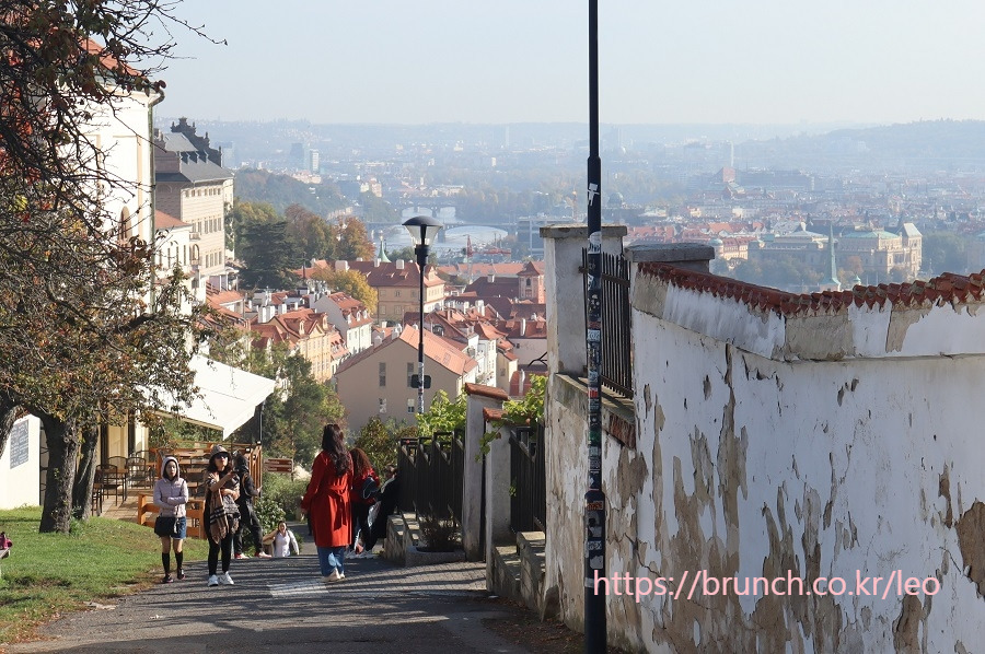 스트라호프수도원에 들어가기 직전에 등을 돌려 시내를 내려다본다. 시원하면서 아름다운 경치가 눈에 들어온다. 성비투스대성당을 중심으로 프라하성의 전경도 보인다. 이곳에서 잠시 숨을 돌리면서 등에 맺힐 듯 말 듯 한 땀도 식히고 가고자 한다.