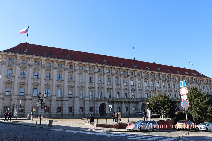 포호르젤레츠 거리를 따라 내려가는데 넓은 주차장에 많은 차가 세워져 있다. 주차장 앞에는 단정한 미색 벽이 편안한 느낌을 주는 건물이 보인다. 길이만도 100m를 넘는 큰 건물인 데다 아름답고 웅장해서 황제가 산다고 해도 믿을 수 있을 정도다. 프라하에서 가장 큰 바로크식 건물인 체르닌 궁전이다. 이곳은 1930년대 이래 체코 외무부 청사로 사용되고 있다.