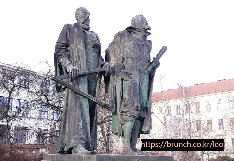 흐라드차니 서쪽 끝에는 흥미로운 동상이 하나 서 있다. 16세기 유럽의 최고 천문학자였던 요하네스 케플러와 티코 브라헤다. 우리나라 사람에게는 천동설을 주장한 케플러는 익숙하지만 브라헤는 낯선 인물이다. 하지만 당시에는 브라헤가 케플러보다 더 중요한 인물이었다.