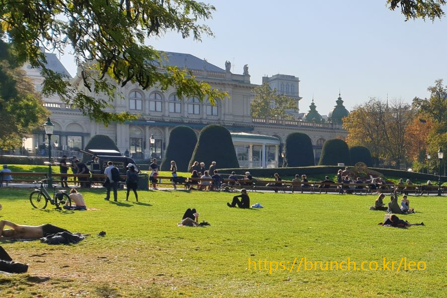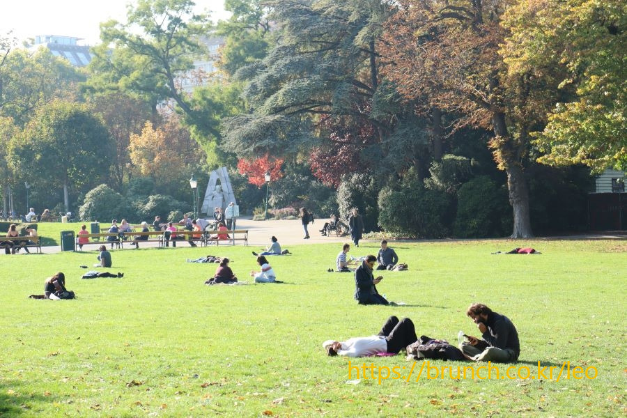 슈타트파크는 생각보다 훨씬 많은 사람으로 붐빈다. 공원 곳곳에 펼쳐진 파란 잔디밭은 온통 잔디 위에 드러눕거나 돗자리 위에 앉은 사람 천지다. 책을 읽거나 음악을 듣는 사람도 있고, 그냥 하늘만 멍하니 바라보는 사람도 있다. 도시락을 먹거나 커피를 마시면서 친구, 지인과 대화를 나누며 즐겁게 웃는 사람도 보인다.
