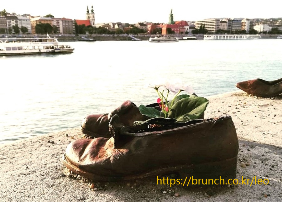 칸 토카이와 귤라 파워가 신발 조형물을 만들어 설치한 것은 학살당한 유대인에게 신발을 돌려줌으로써 그들의 존재를 다시 세상으로 데려오는 일종의 복원 장치였던 셈이다. ‘다뉴브 강가의 신발들’ 앞에는 언제나 꽃이 놓여 있다. 희생자의 유족이거나, 과거의 학살에 양심의 가책을 느끼는 헝가리인들이 가져다놓은 것이다. 5년 전 겨울에 눈이 내렸을 때 간 적이 있었다. 하얀 눈에 덮인 빨간 장미와 녹이 슬어 검은색처럼 변한 신발의 모습은 깊은 인상을 남기기에 충분했다.